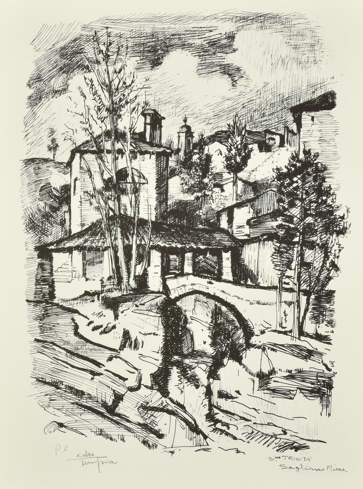 Celso Tempia PAESAGGIO BIELLESE litografia su carta, cm 50x35, es. P.A. firma