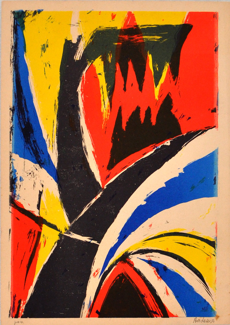 ENRICO BORDONI Senza titolo, 1954 Litografia a colori – es. Prova cm. 35x25 Firma, data e tiratura in basso