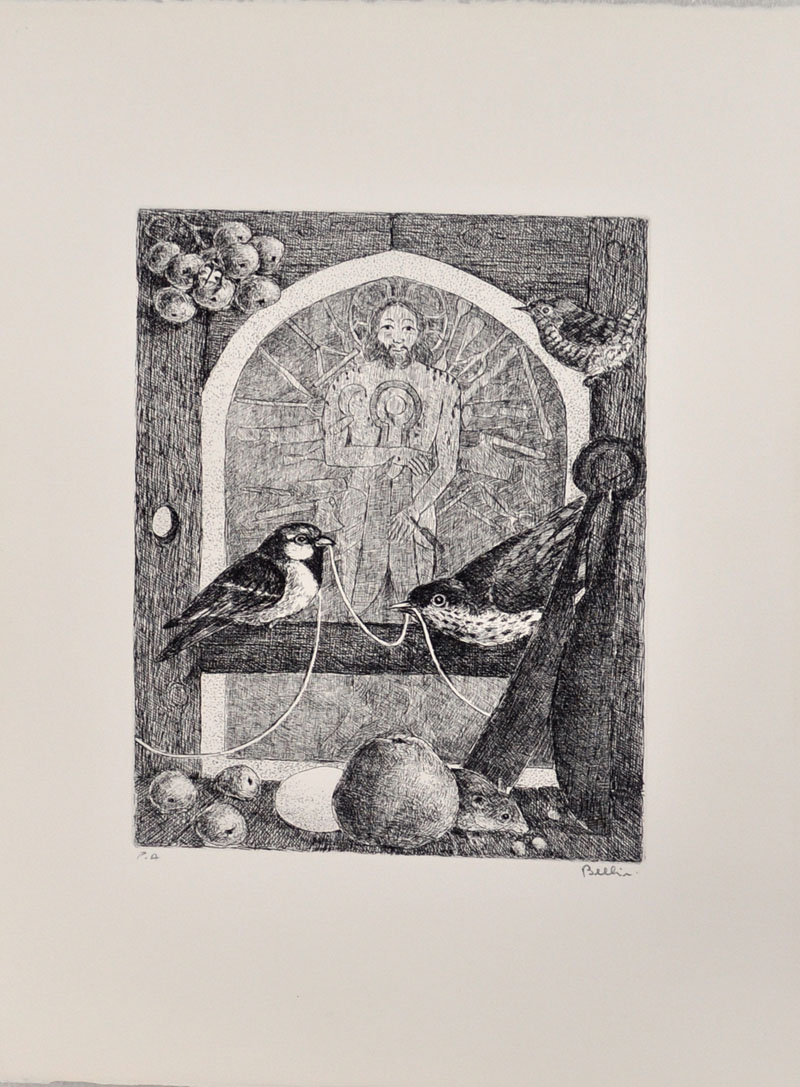 ENZO BELLINI La domenica Acquaforte in b/n – es. P. A. cm. 49x35 Firma e...