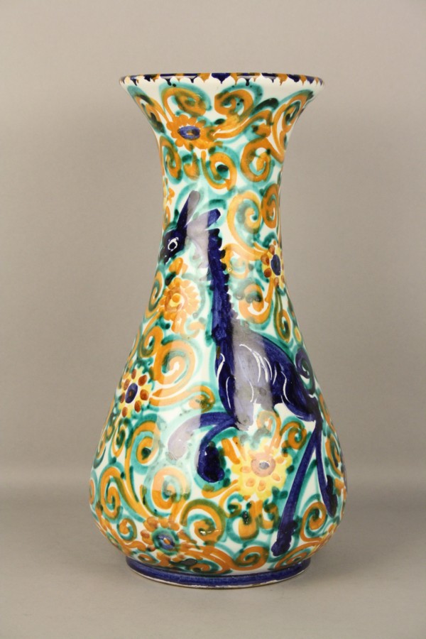 DOLCETTI GIACOMO - Venezia, 1893-1957. Vaso in terracotta maiolicata. Anno 1923/25. Pubblicato su Uomini e ceramiche del Novecento italiano, pag. 120. Mis. Lung. cm. 17 Alt. cm. 32 ca.