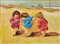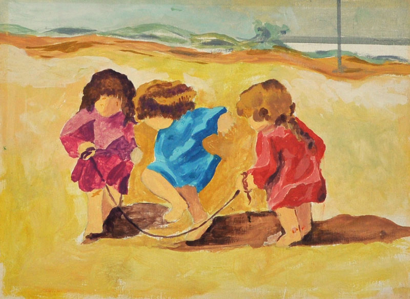 IGNOTO Giochi di bambine Olio su tavola cm. 23x31 Firma indecifrabile e dedica sul retro