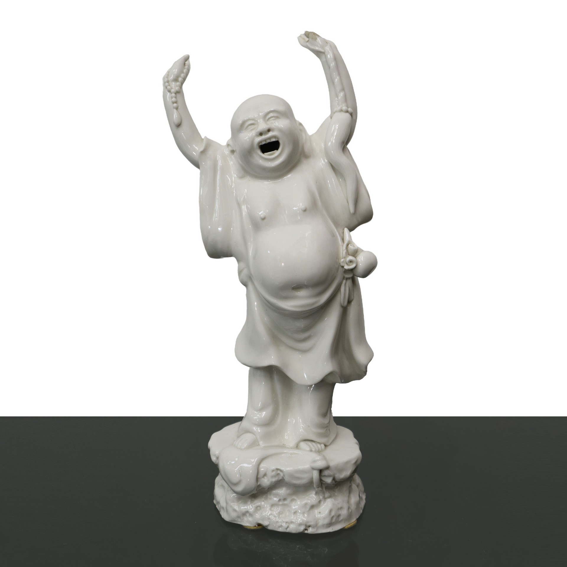 Statuina cinese di Buddha gioioso in ceramica bianca, 20° secolo