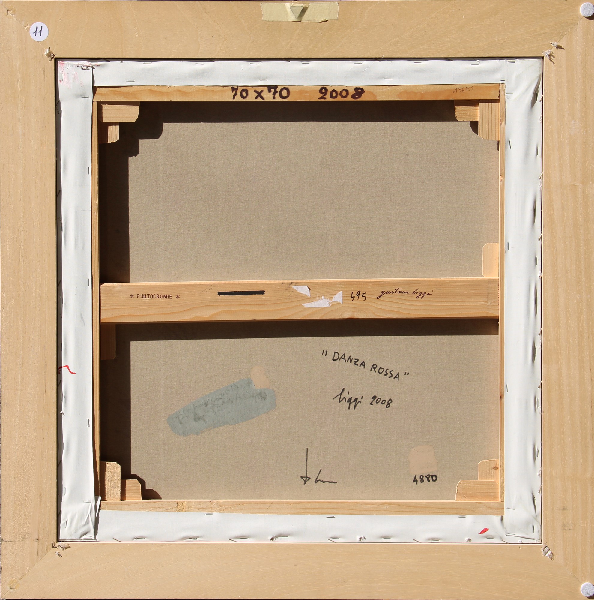 Numerazione, firma, titolo, firma, data "495, Gastone Biggi, Danza rossa, Biggi, 2008" (al retro)
