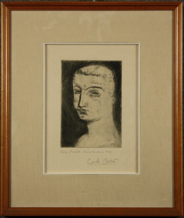 CARRA' CARLO - Nato a Quargnento (Alessandria) nel 1881. Morto a Milano nel 1966. Incisione intitolata ''TESTA DI BAMBINO''. 1924. Prova d'artista. Controfirmata dall'artista. In cornice. Mis. Lung. cm. 23 Alt. cm. 32 ca.