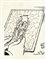 Raccolta di 10 matite e penne e inchiostro di china su carta leggera