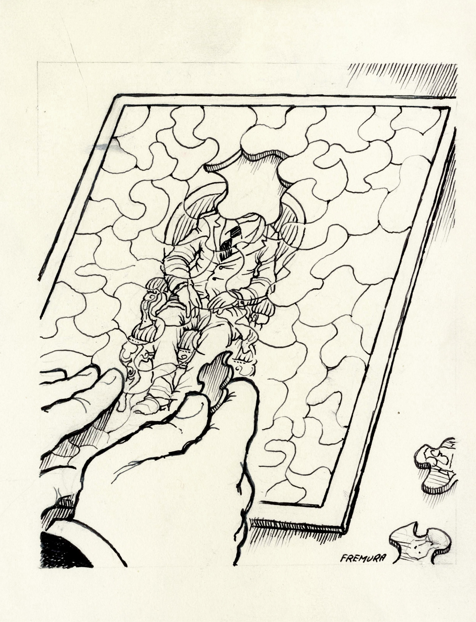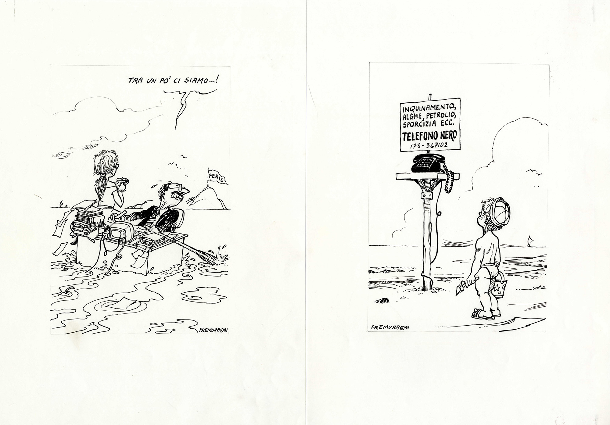 Alberto Fremura, Lotto composto di 10 vignette umoristiche per quotidiani. 1978-91.