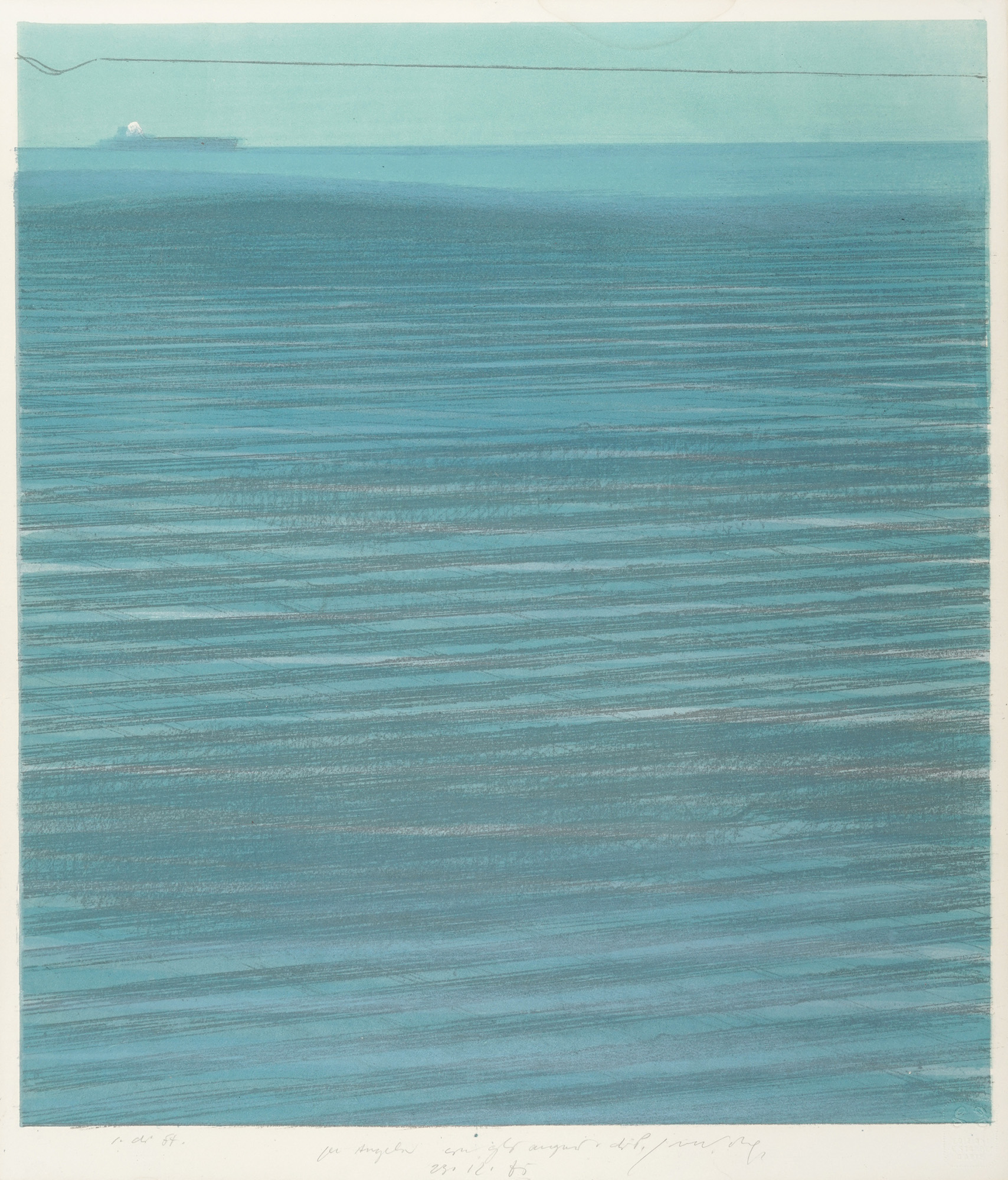 2) Pagina di mare. 1975. Litografia. mm 553x475. Foglio: mm 595x500.