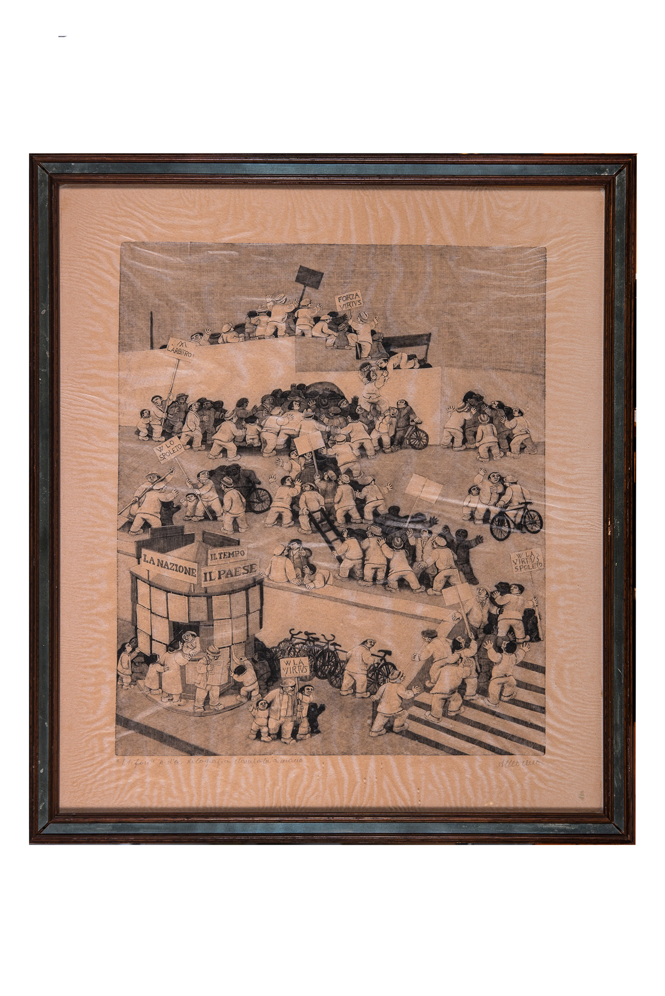 Titolo e "p.d.a. Xilografia stampata a mano" sempre a matita in basso a sinistra.