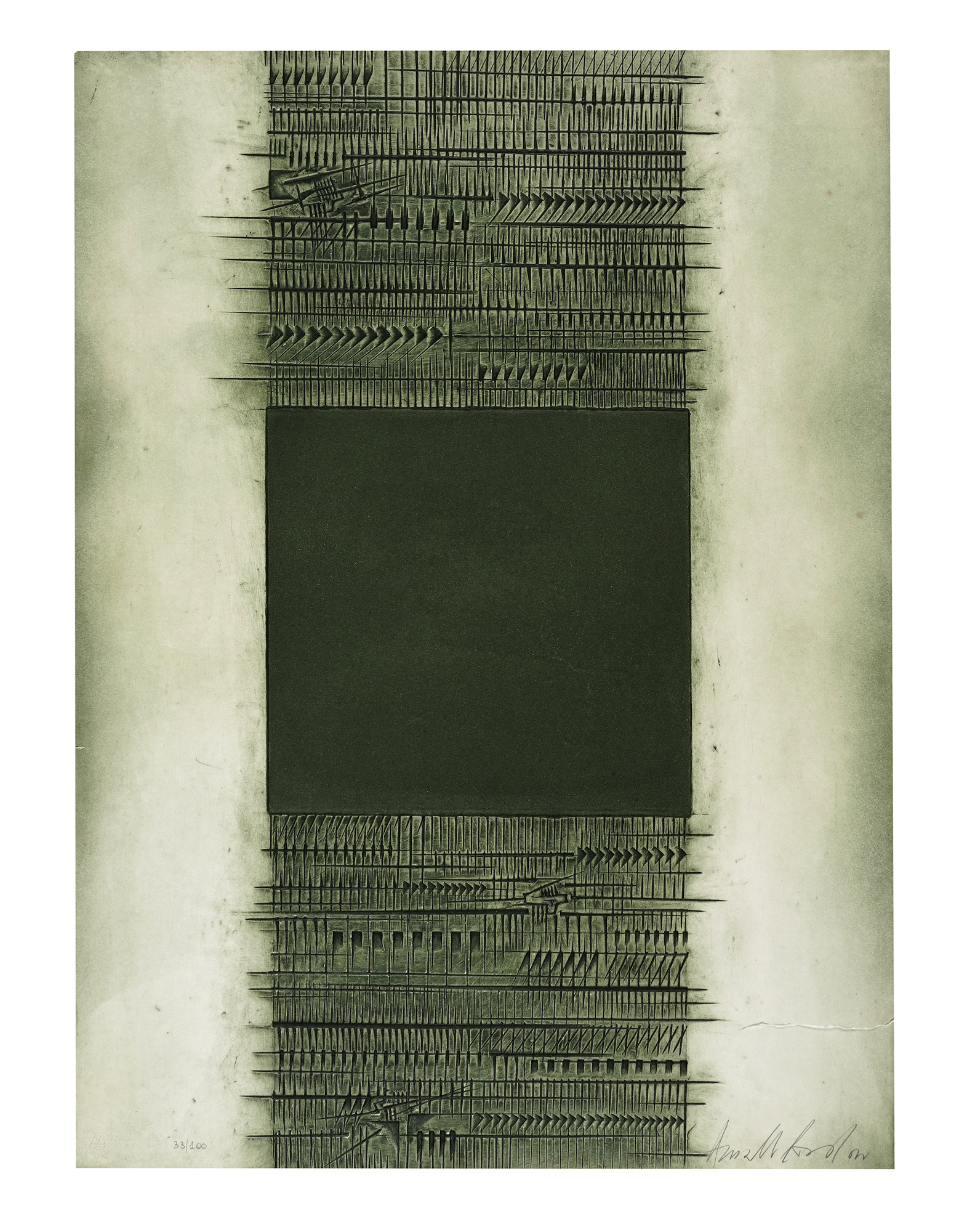 Firma a matita in basso a destra e tiratura in basso a sinistra.