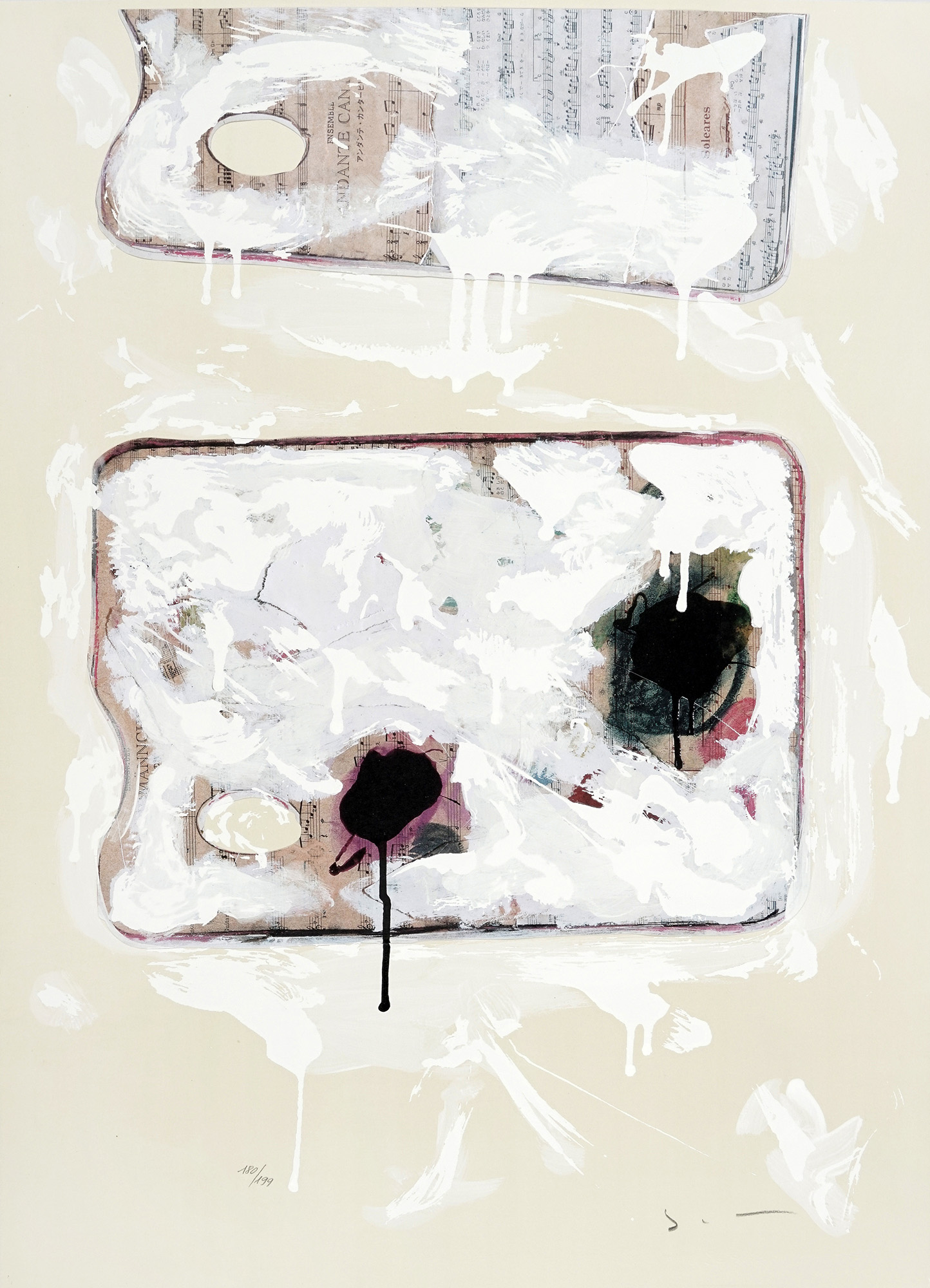 1) Tavolozza. 1997. Applicazione offset a collage e serigrafia su carta. mm 650x470. Foglio: mm 700x500.