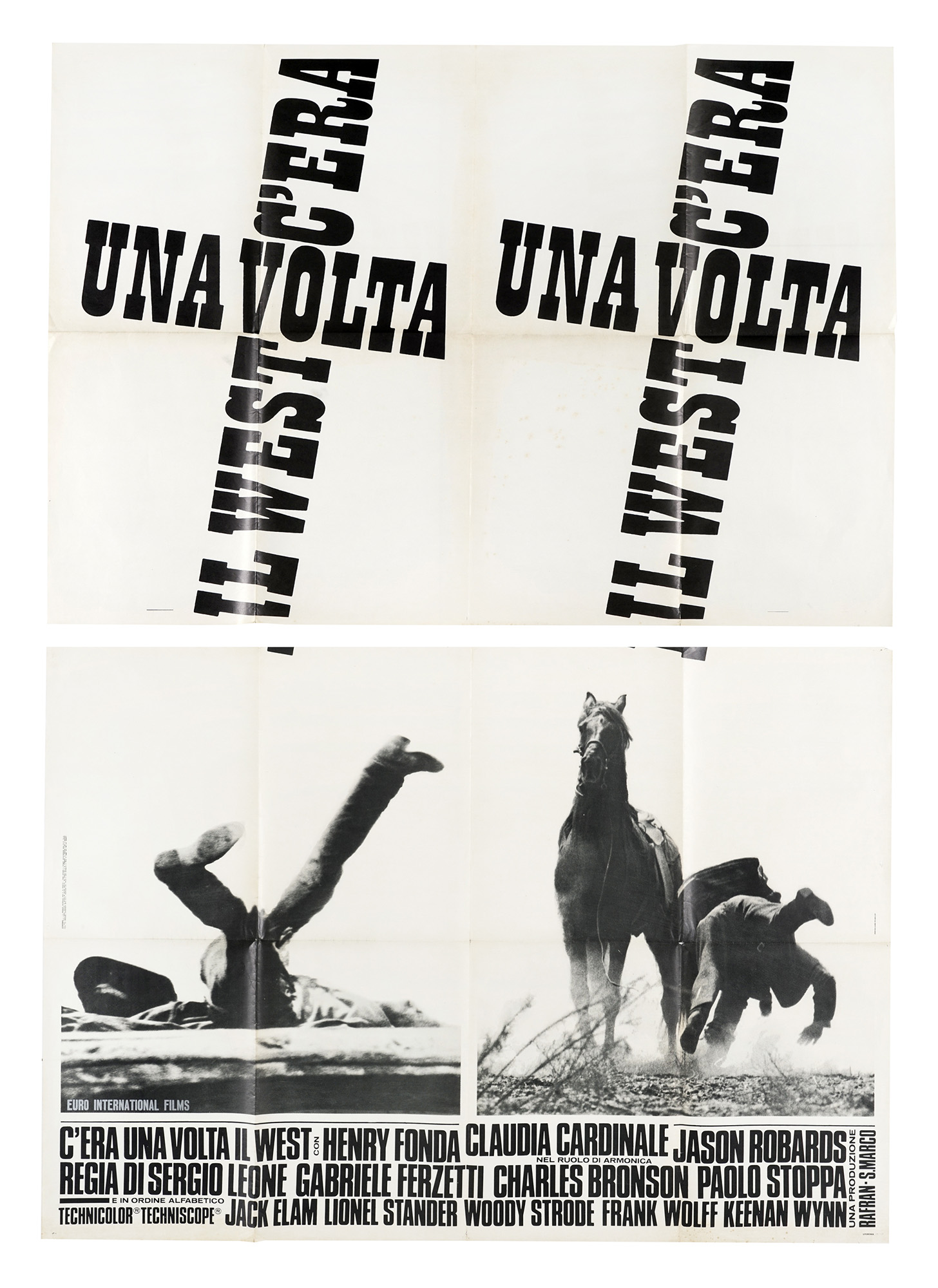 Cast e dati editoriali al margine inferiore del secondo foglio. Ristampa sicuramente postuma rispetto alla data di realizzazione della pellicola con la regia di Sergio Leone. Grazie all'intervento di Folco Lucarini, uno dei capisaldi del design grafico del XX secolo a Milano, il manifesto adotta uno stile ben più contemporaneo rispetto alla classica locandina originale.