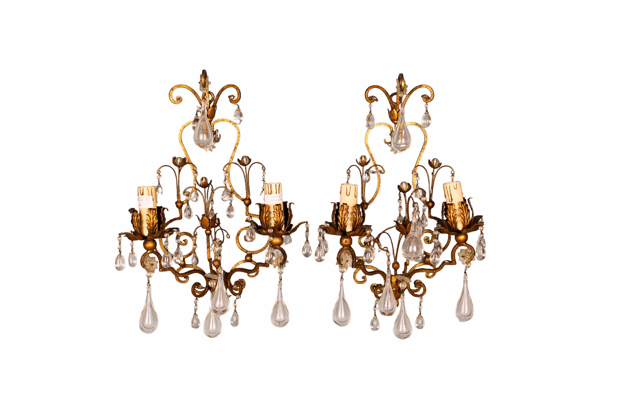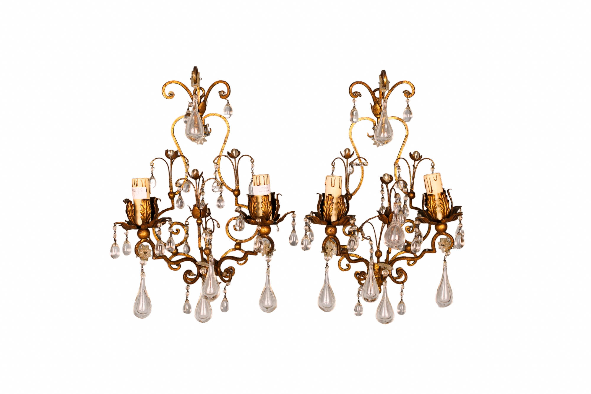 QUATTRO APPLIQUES in metallo dorato e pendenti in vetro manifattura Siciliana primi 900 h cm 37 x 30