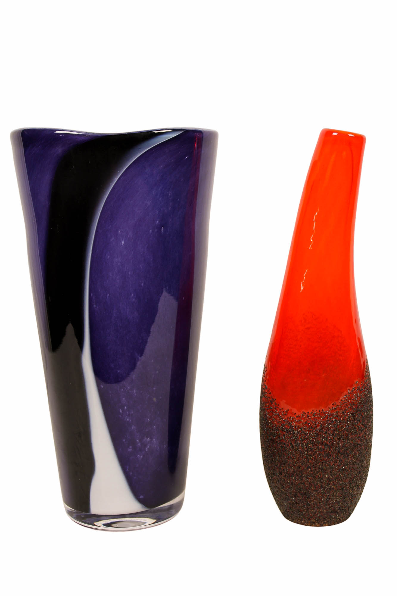DUE VASI in vetro colorato marcati Kosta Boda manifattura svedese XX secolo h cm 30 x 8 / h cm 30 x 15
