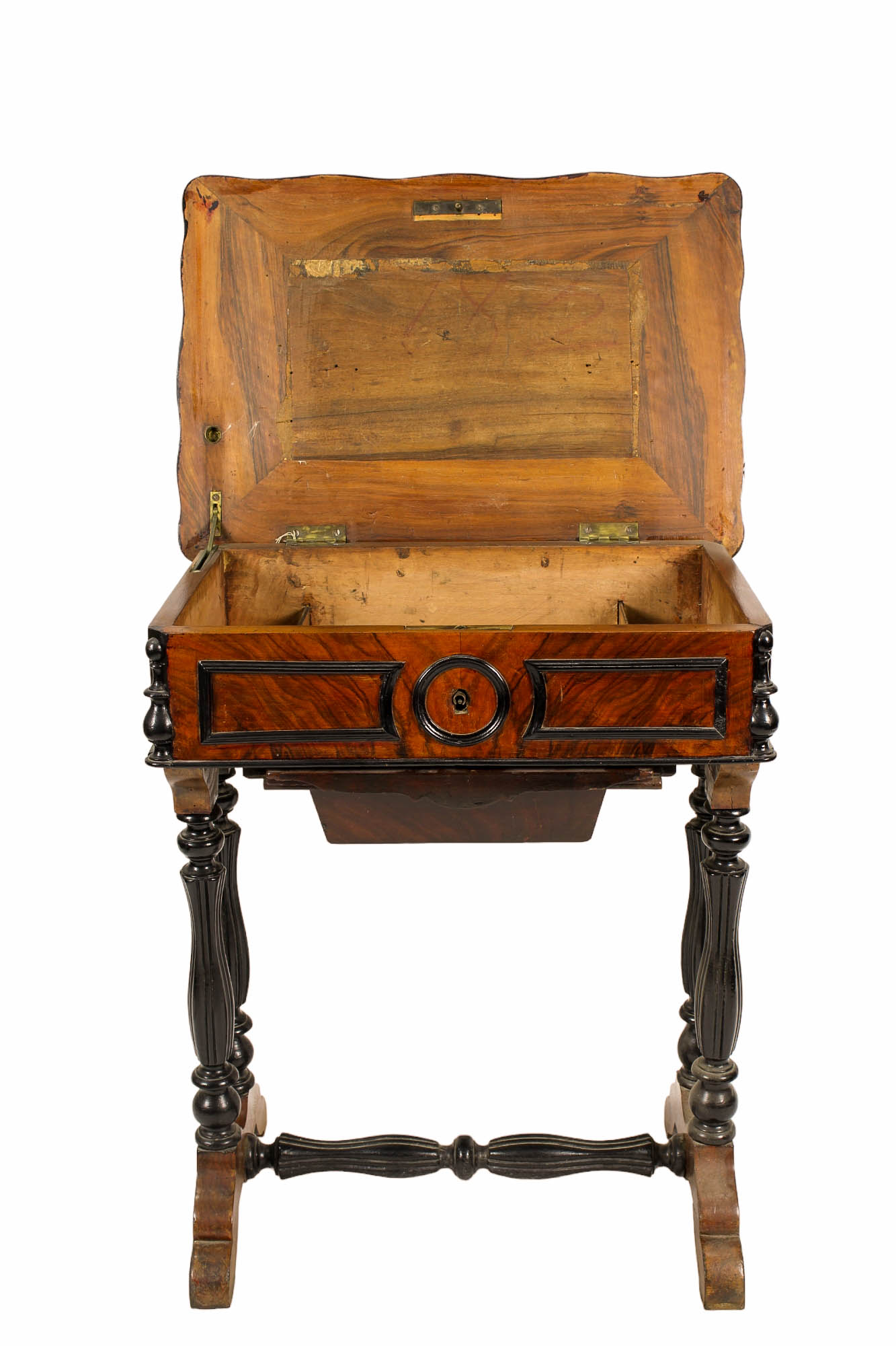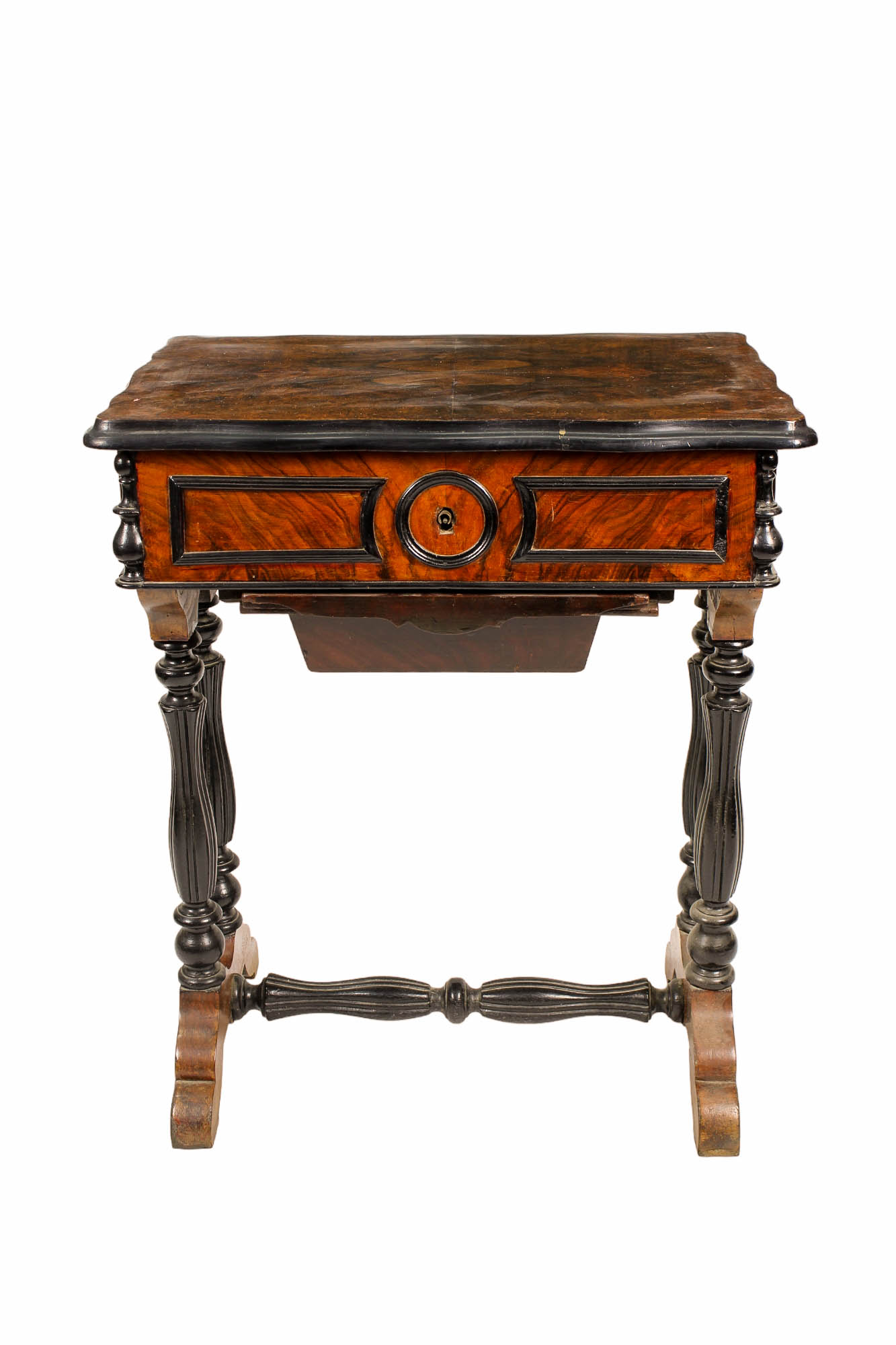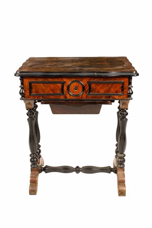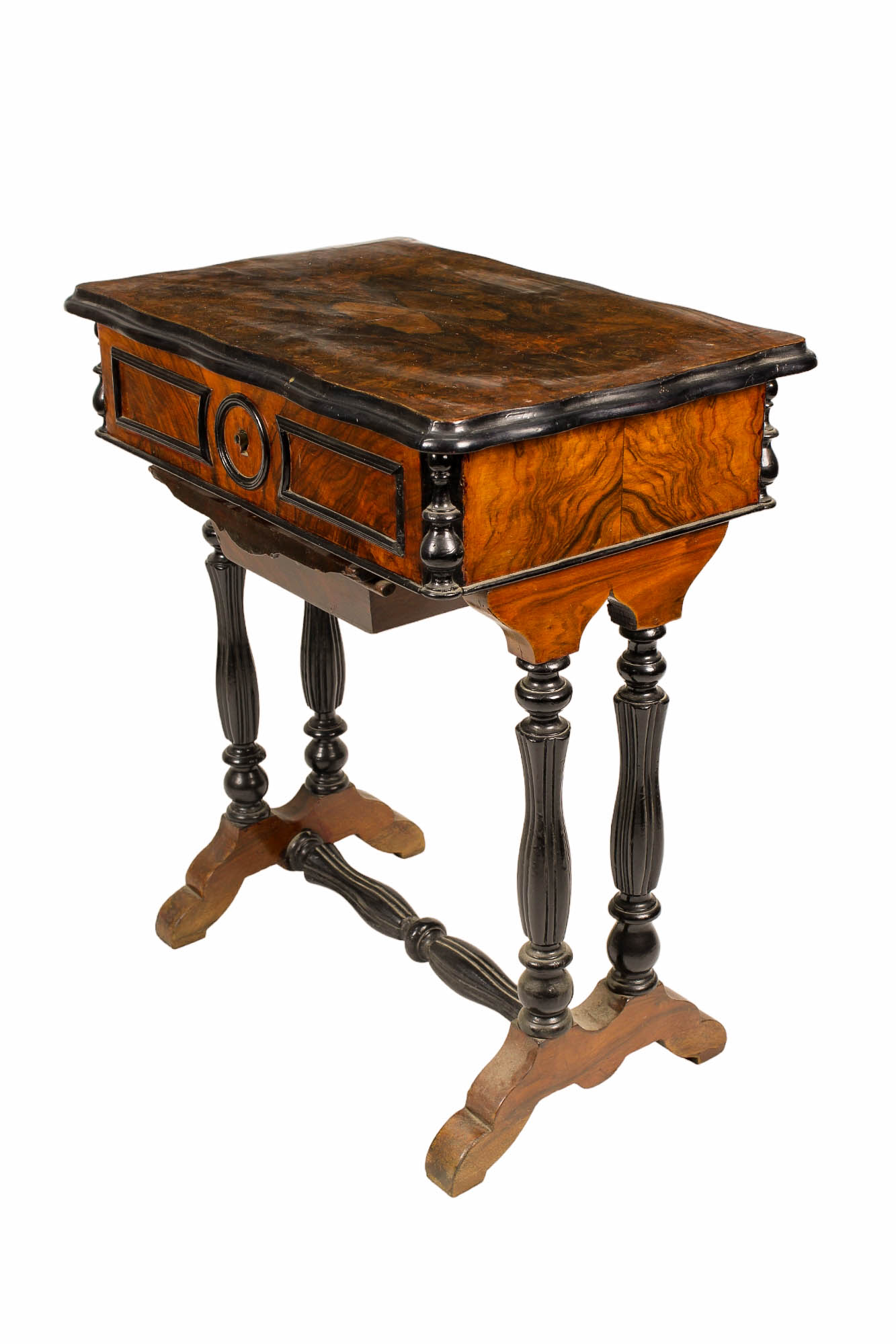 TAVOLINO DA LAVORO in radica di noce e legno ebanizzato Francia XIX secolo h cm 64 x 54 x 37