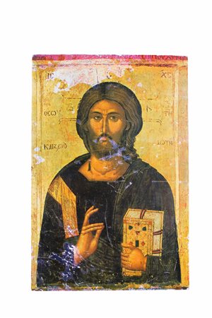 STAMPA ICONA MACEDONA raffigurante Cristo Salvatore XX secolo h cm 67 x 45