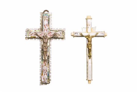 LOTTO COMPOSTO DA 2 crocifissi in metallo dorato con croci in madreperla Italia primi 900 h cm 13 x 8 / h cm 12,5 x 6,5