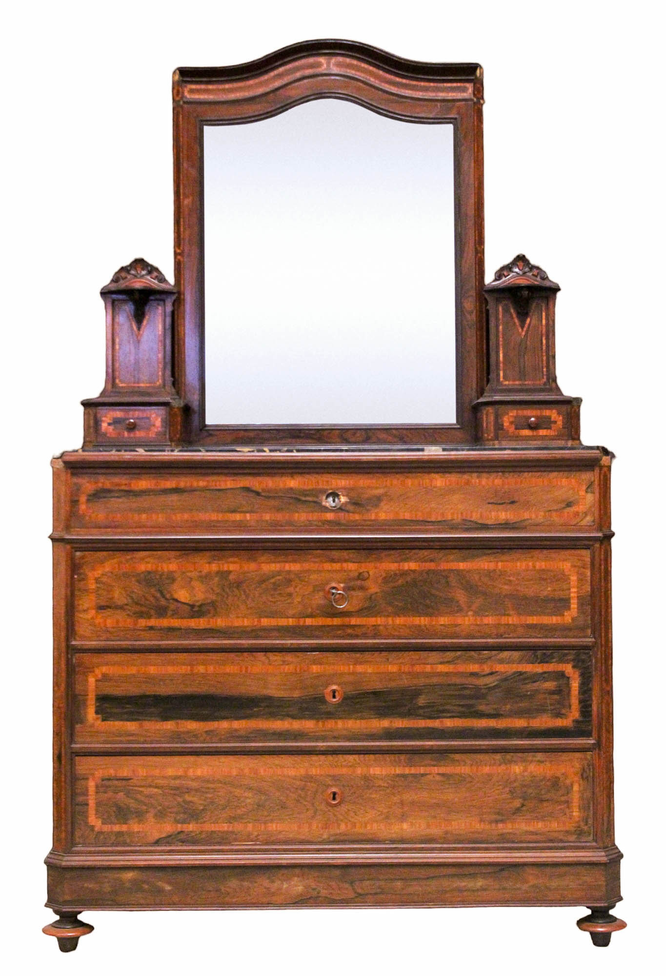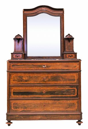 CASSETTONE in palissandro perfilato in bois de rose con piano in marmo nero venato e specchiera con due cassetti Sicilia XIX secolo h cm 201 x 118 x 56