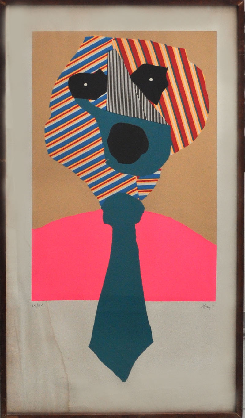 ENRICO BAJ Senza titolo Serigrafia a colori – es. IX/ Firma e tiratura in basso Macchie di umidità sulla parte sinistra e piccole piegature del cartone in basso.