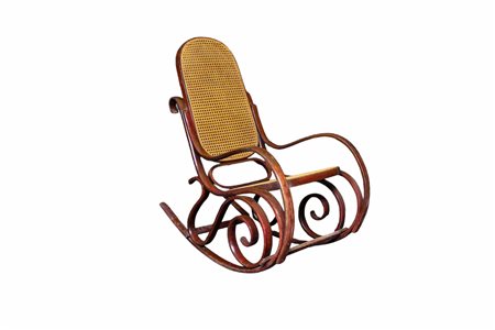 SEDIA A DONDOLO in legno di mogano con seduta e schienale in finocchino di gusto Thonet primi 900 h cm 102 x 56 x 100