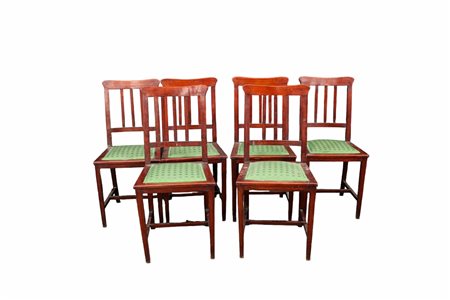 LOTTO DI 6 SEDIE LIBERTY MANIFATTURA DUCROT in legno di mogano Sicilia Primi 900 h cm 88 x 40 x 38