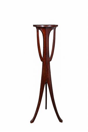LOTTO COMPOSTO DA 1 trespolo porta vaso e 1 mensola in legno di mogano con stampe colorate raffigurante corsa dei cavalli probabilmente manifattura Ducrot periodo liberty Sicilia primi 900 misure varie