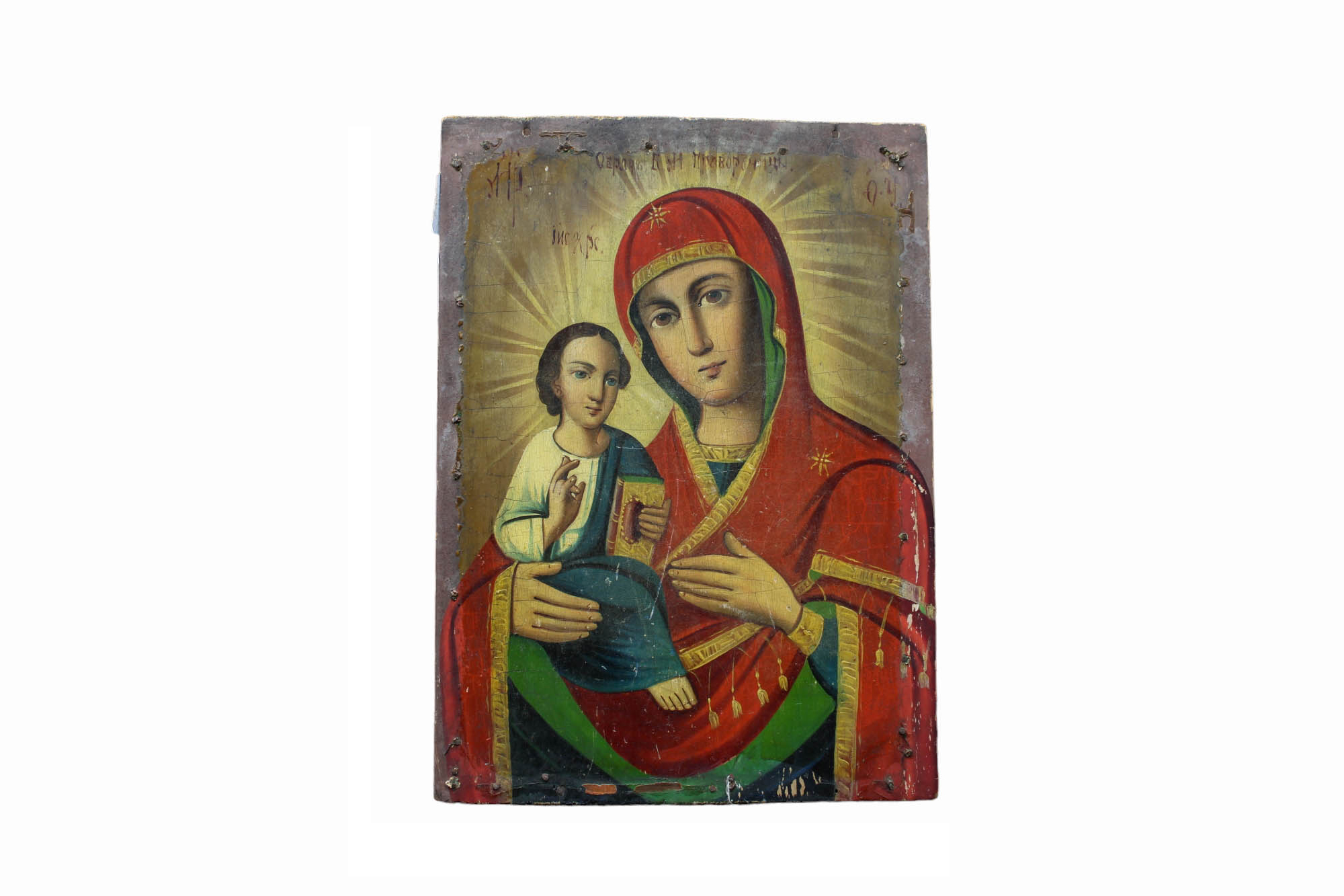 OLIO SU TAVOLA raffigurante Madonna con bambino scuola baltica primi 900 h cm 30,5 x 22