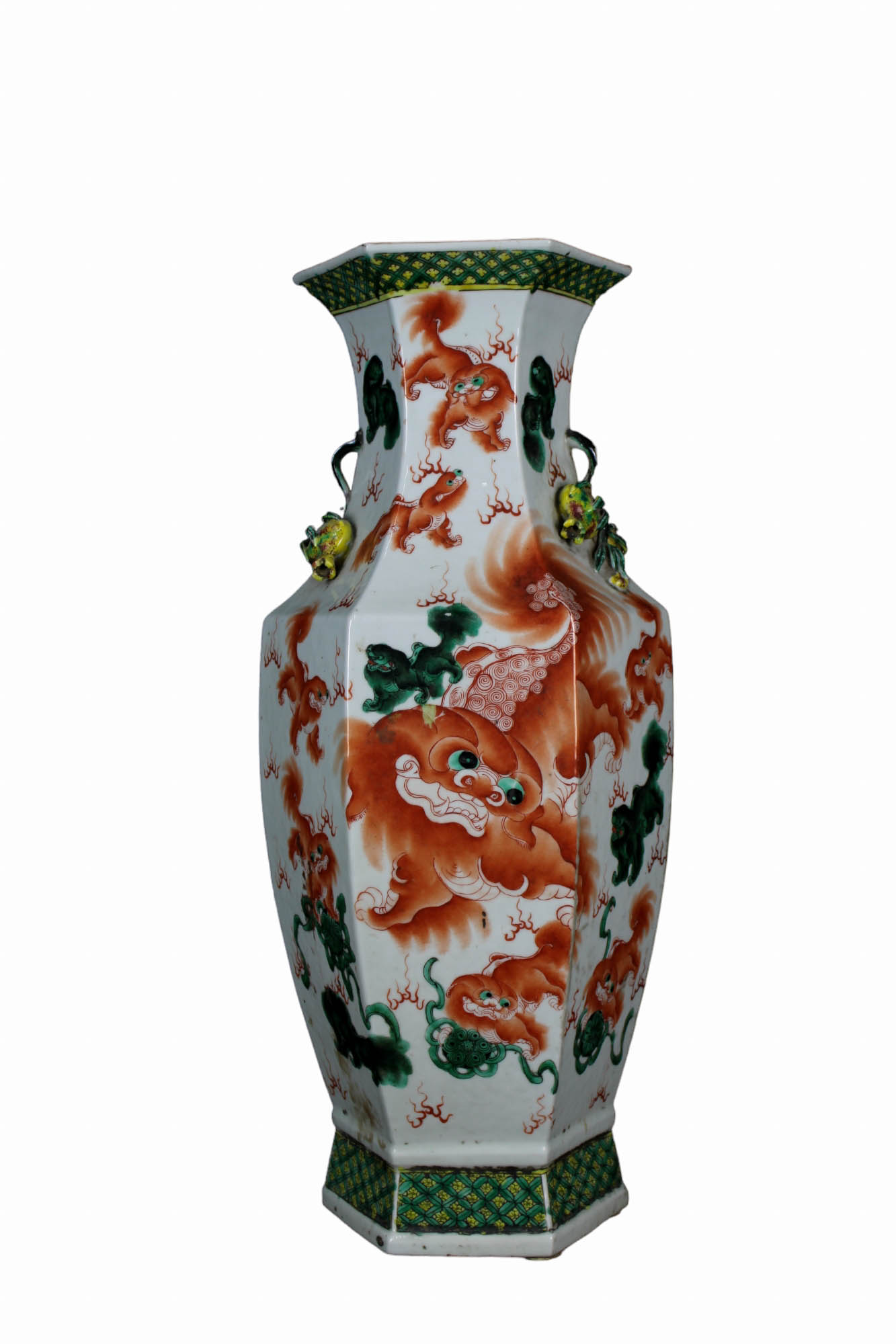 VASO in porcellana dipinto da scene Orientali manifattura Cina XIX secolo h cm 59 x 26