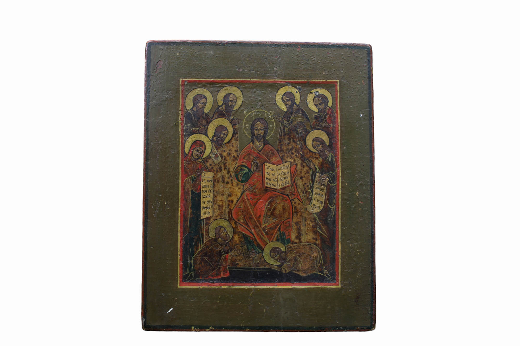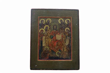 ICONA OLIO SU TAVOLA raffigurante scena sacra scuola elvetica XIX secolo h cm 33,5 x 26