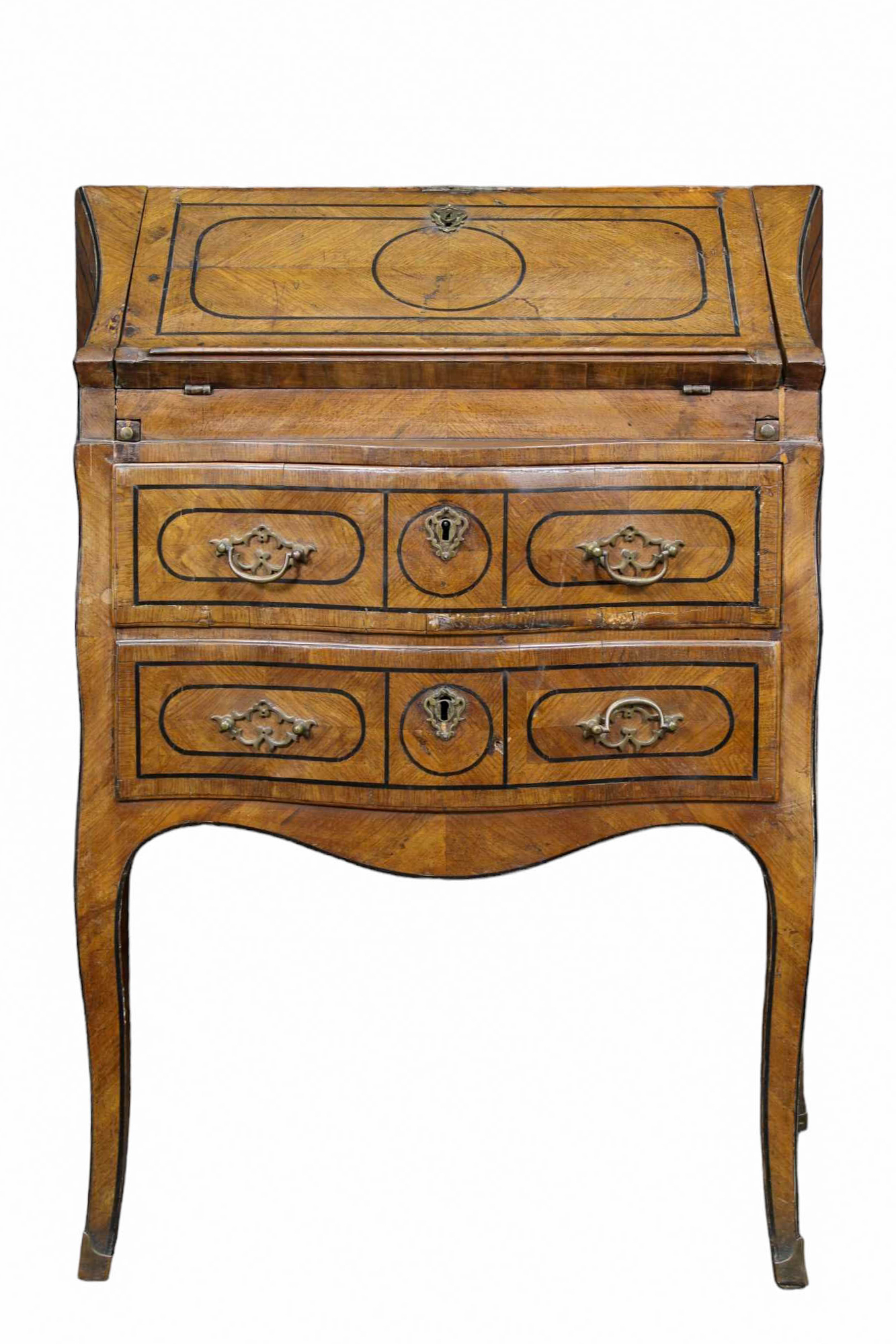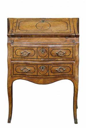 ELEGANTE RIBALTINA in noce e perfilata in legno ebanizzato Sicilia II metà del XVIII secolo h cm 102 x 78 x 47