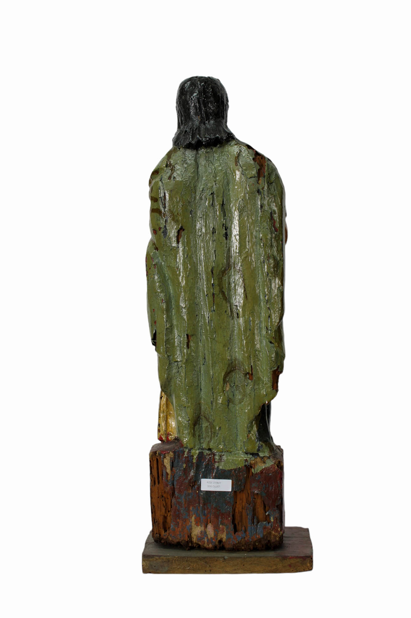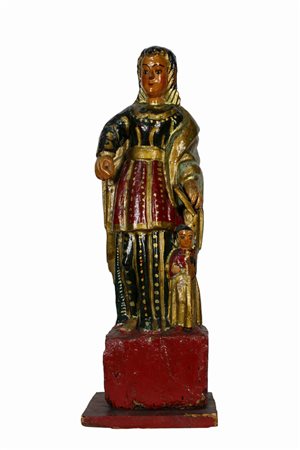 SCULTURA in legno dipinta raffigurante figura femminile con bambina scuola Ispanica XVIII/XIX secolo h cm 61 x 20,5 x 15