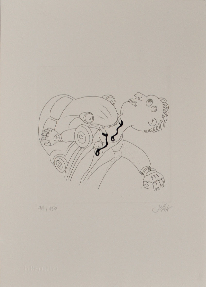 MOJMIR JEZEK Senza titolo Acquaforte in b/n – es. 74/150 cm. 35x25 Firma e tiratura in basso Dalla cartella “La Repubblica – Grafici fuori dal quotidiano”