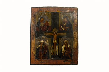 ICONA dipinta su legno raffigurante scene sacre manifattura Baltica XIX secolo h cm 31 x 25,5