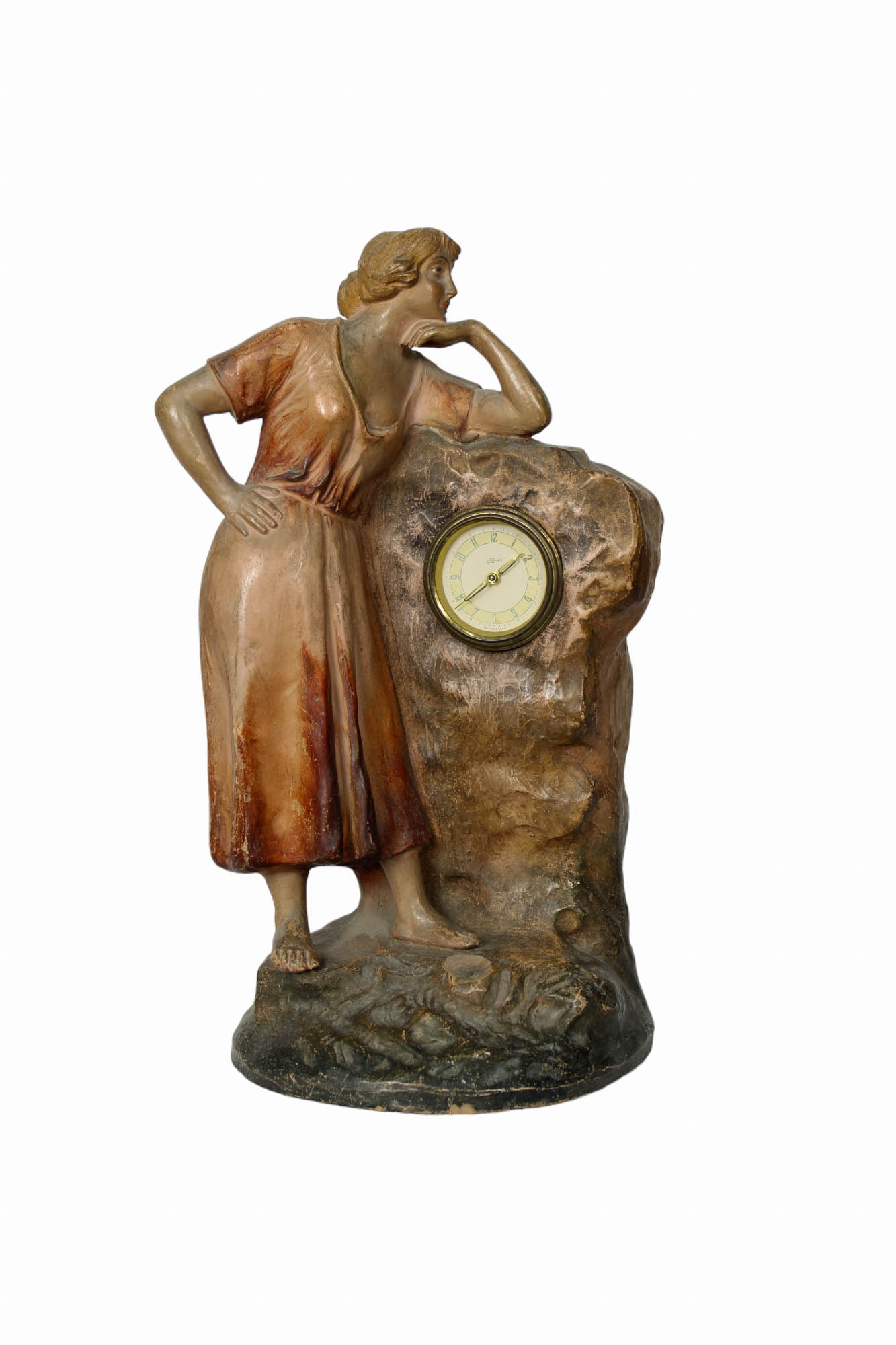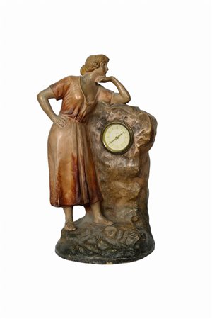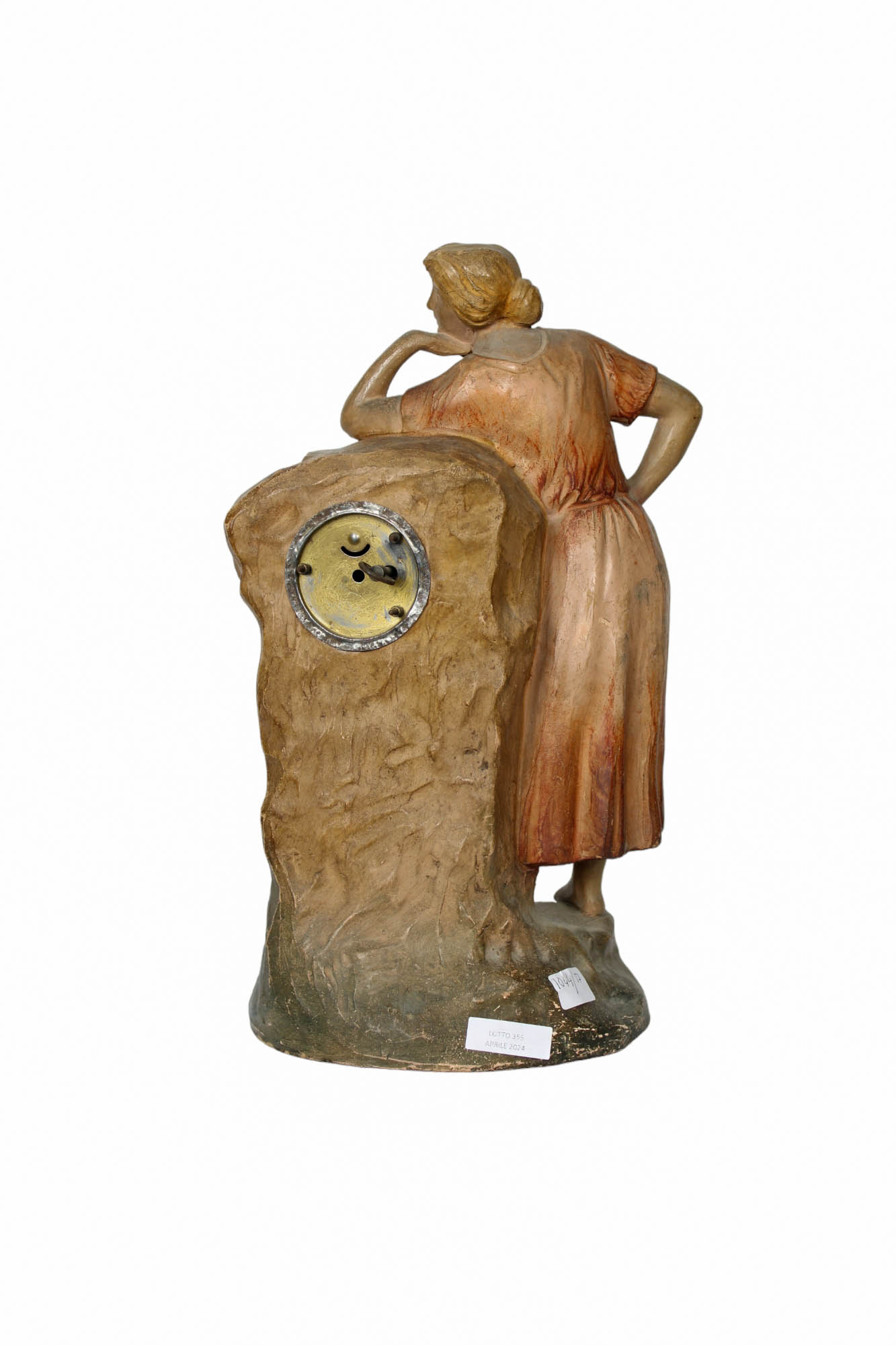 OROLOGIO in terracotta policroma raffigurante figura femminile Francia primi 900 h cm 37 x 18