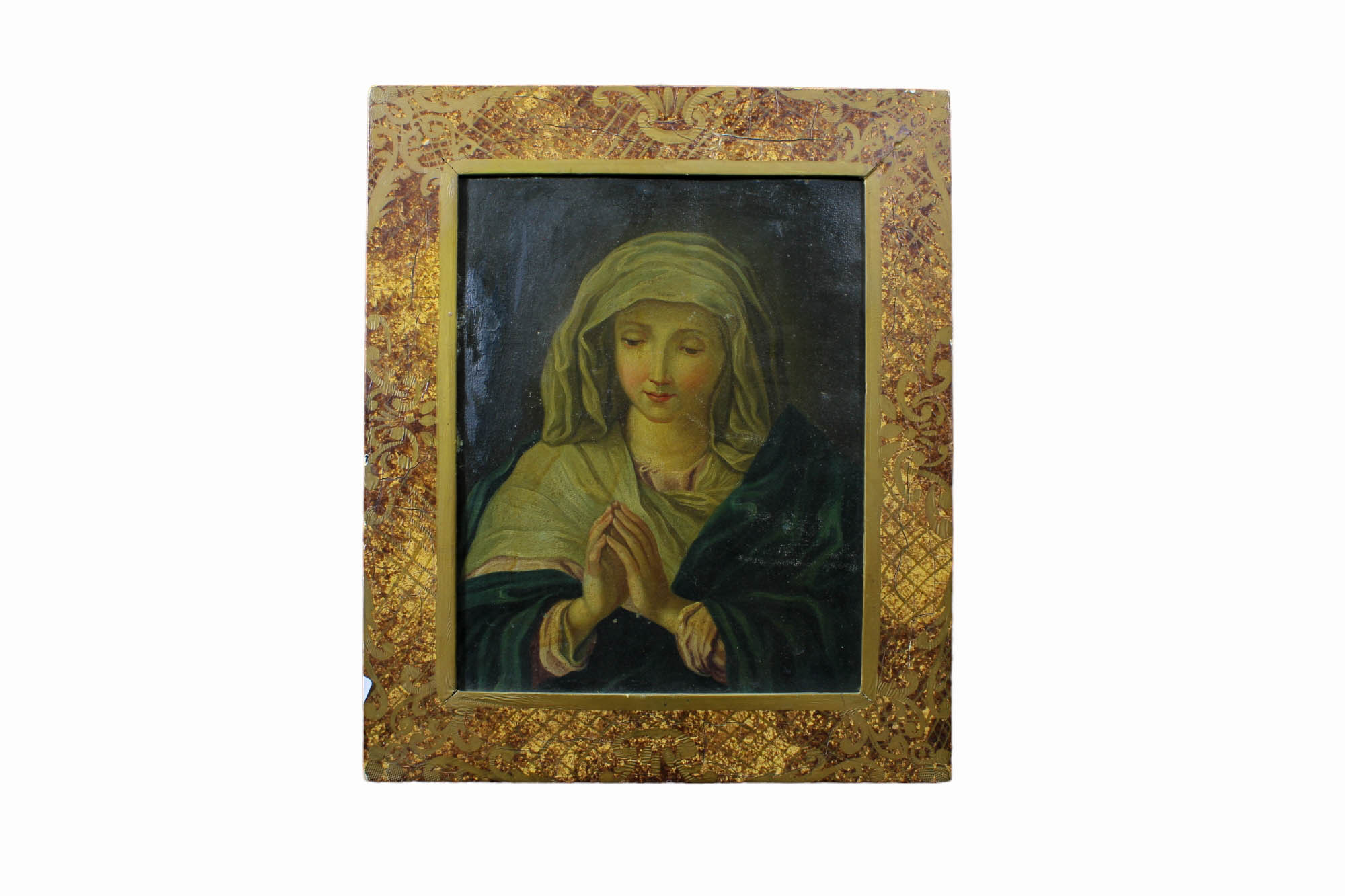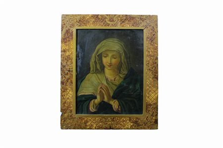 IMPORTANTE OLIO SU RAME raffigurante La Madonna Orante cerchia del maestro Giovanni Salvi detto Il sasso ferrato Italia XVII/XVIII secolo h cm 23 x 18 / cornice h cm 32 x 26,5