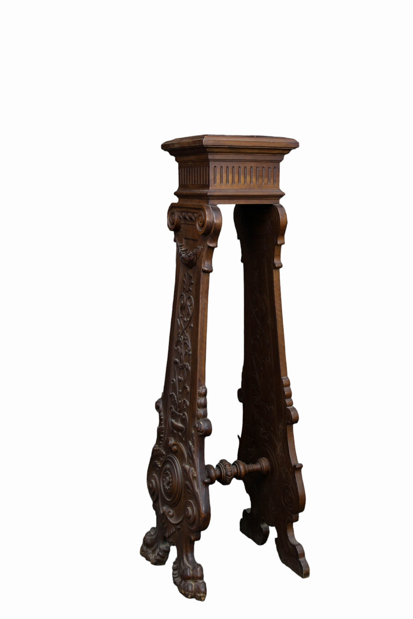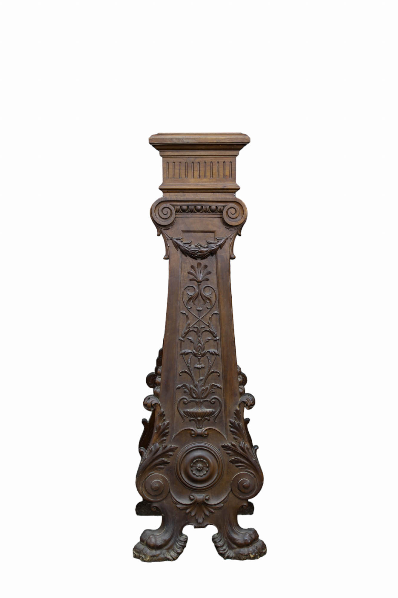 CANTONE DI GUSTO RINASCIMENTALE in legno di noce riccamente scolpito Sicilia XIX secolo h cm 142 x 43 x 38