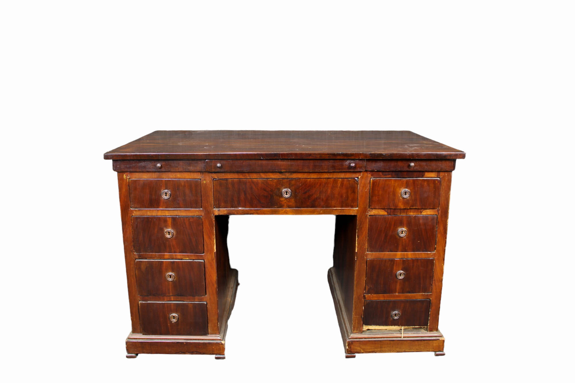 SCRIVANIA A SCAGNO in piuma di mogano Sicilia XIX secolo h cm 82,5 x 128,5 x 75