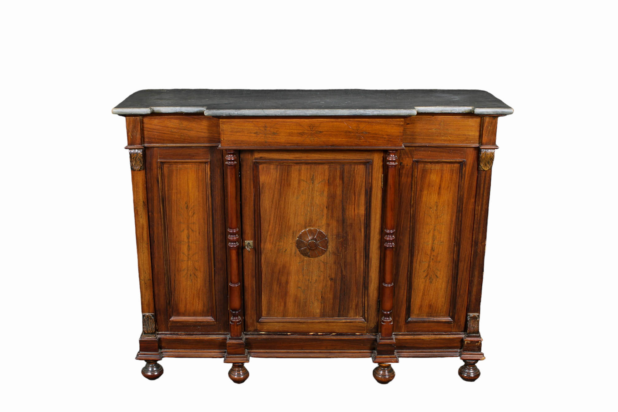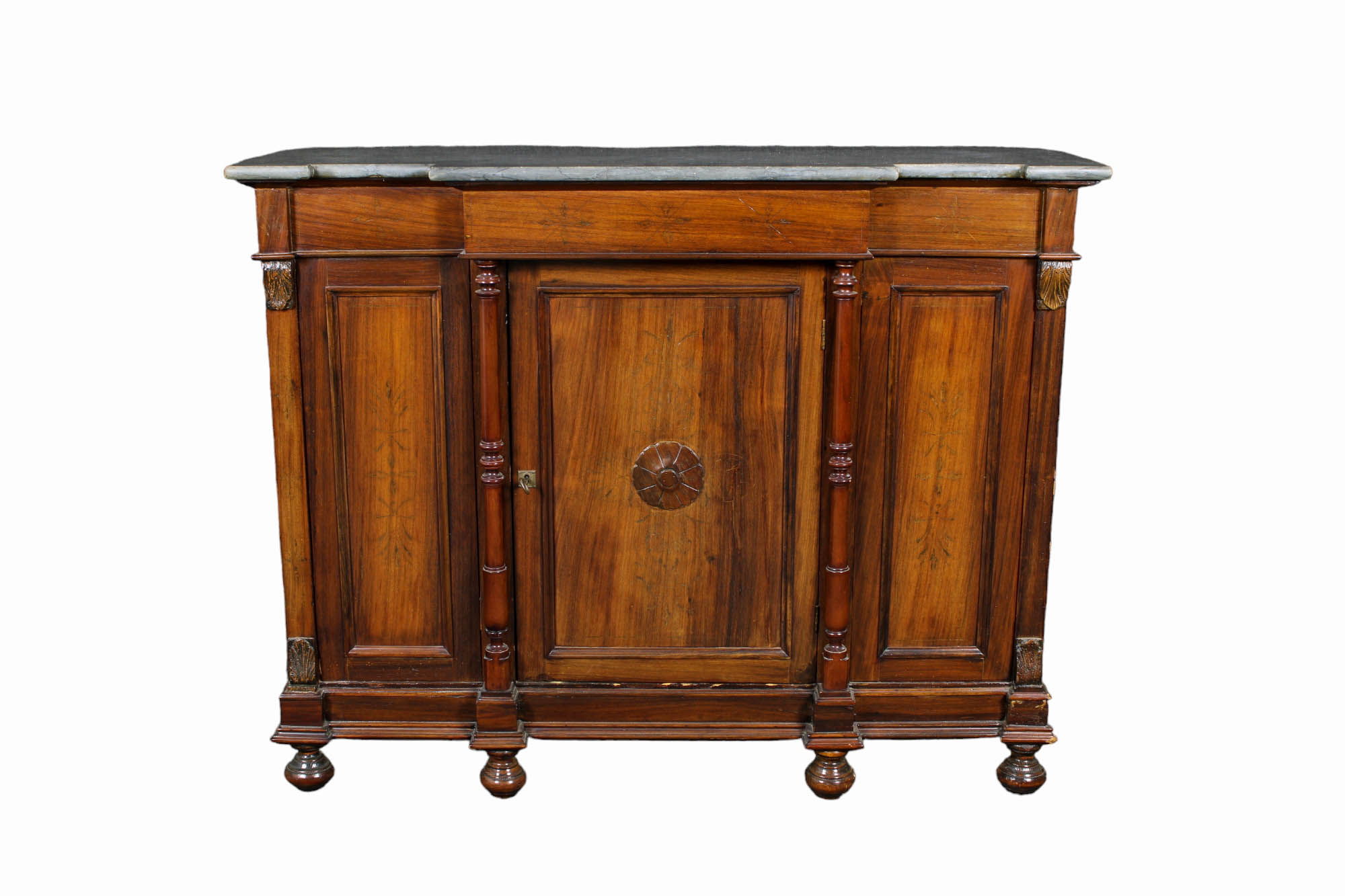 CREDENZA A 3 SPORTELLI in legno di noce piano in marmo grigio di Billiemi Sicilia XIX secolo h cm 105 x 133 x 44