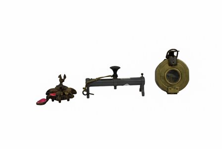 LOTTO COMPOSTO DA 1 pressometro, 1 livello, 1 bussola, 1 goniometro navale ed 1 porta oppio misure varie