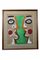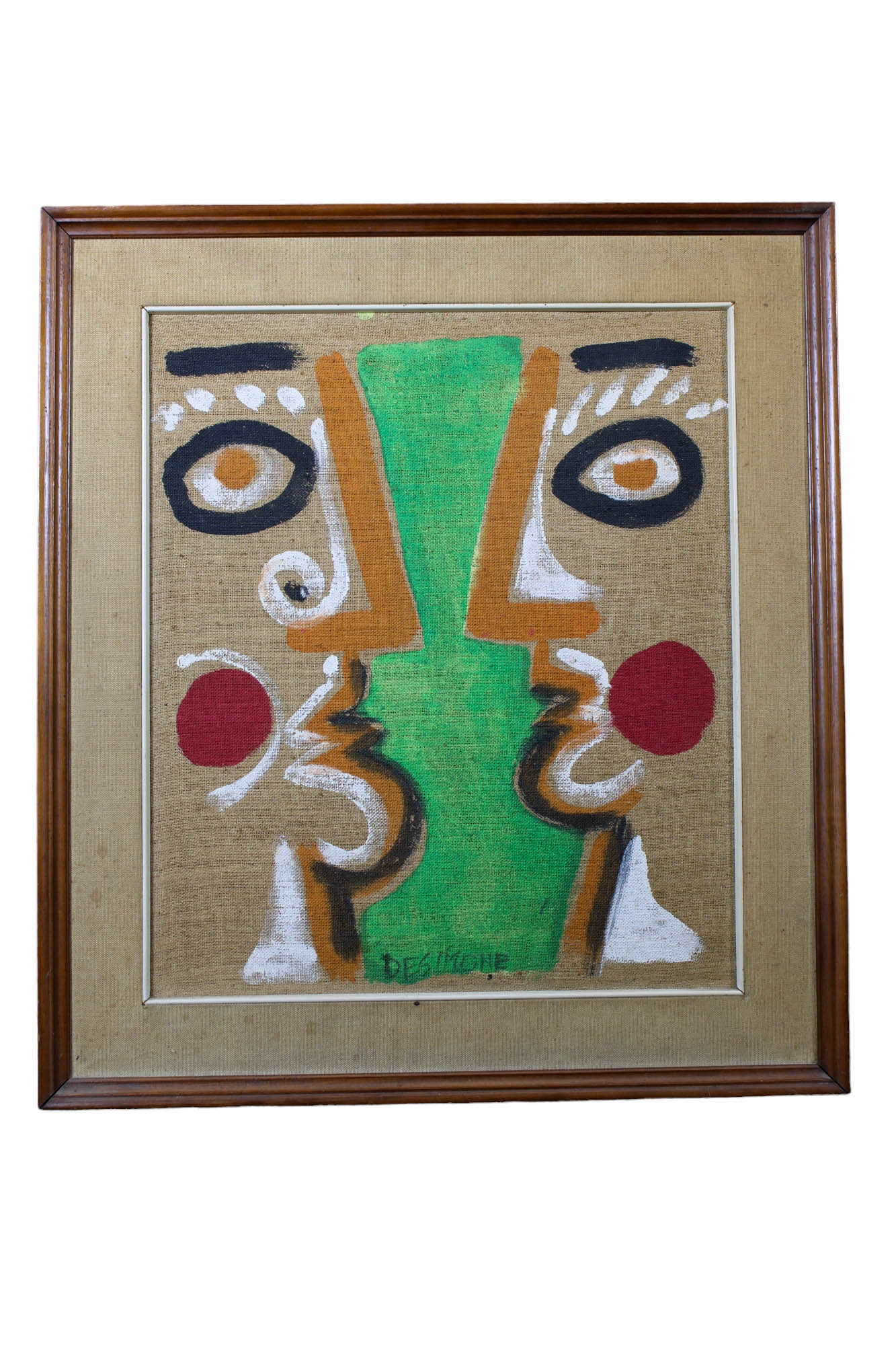 DIPINTO SU TELA GREZZA raffigurante 2 profili astratti dentro cornice in legno a firma De Simone Palermo XX secolo h cm 45 x 40
