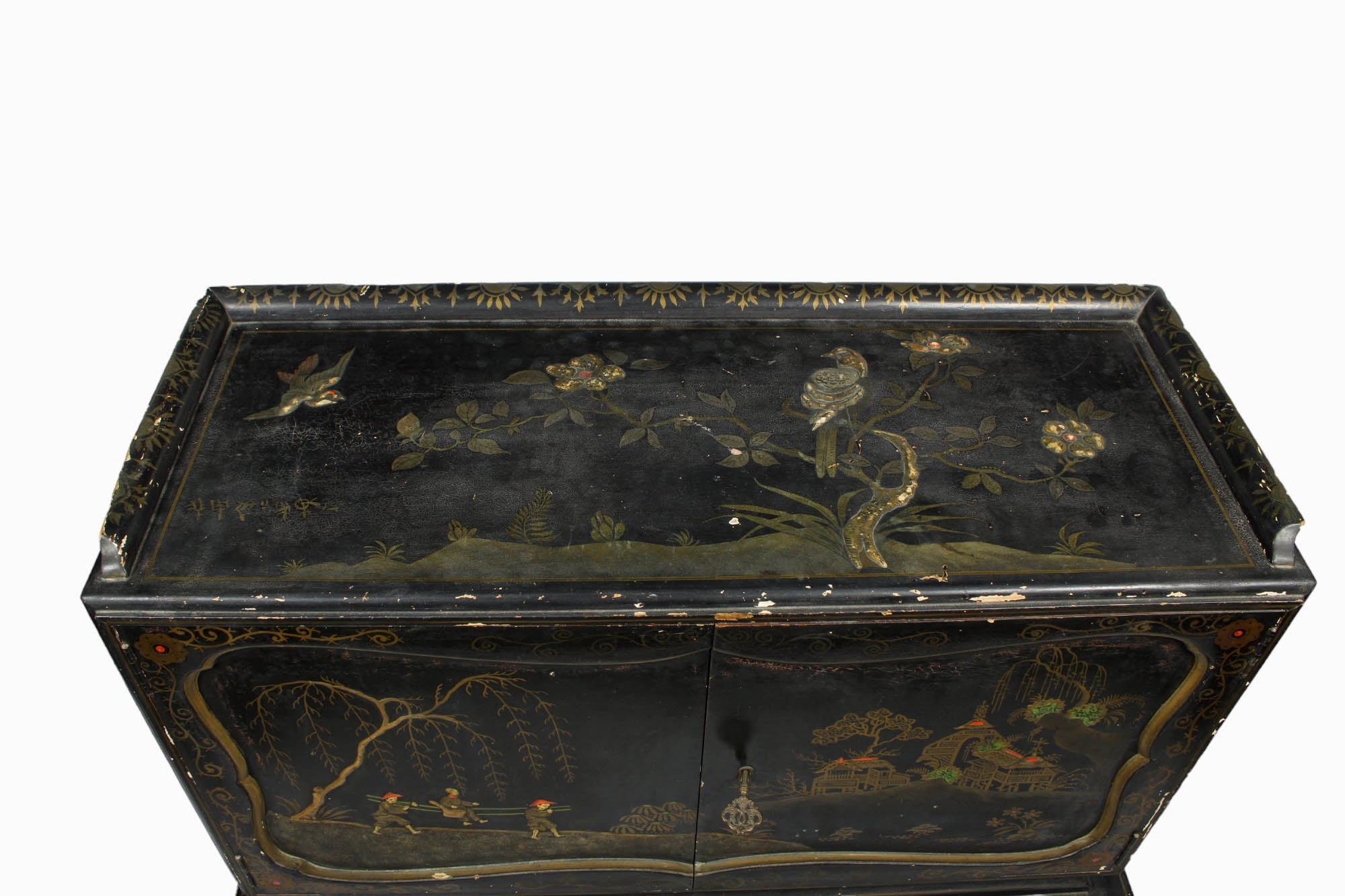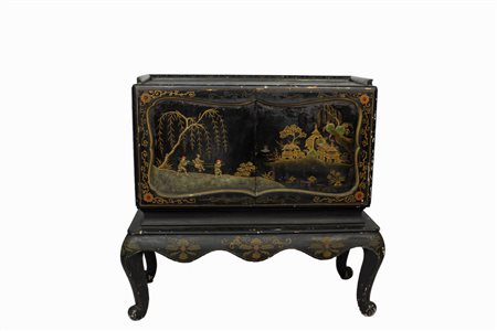 MOBILETTO BAR in legno laccato dipinto e dorato a motivi orientali maestranze francesi XIX/XX secolo h cm 91 x 98 x 39