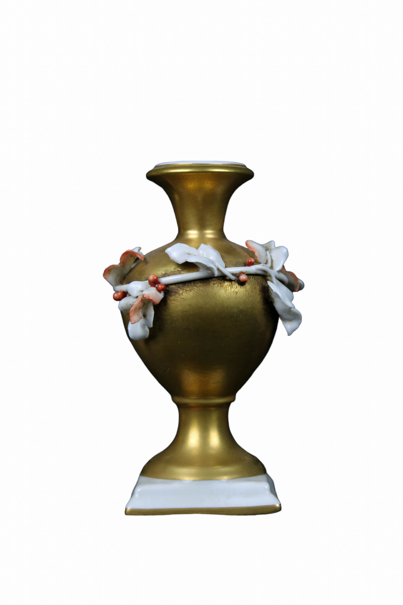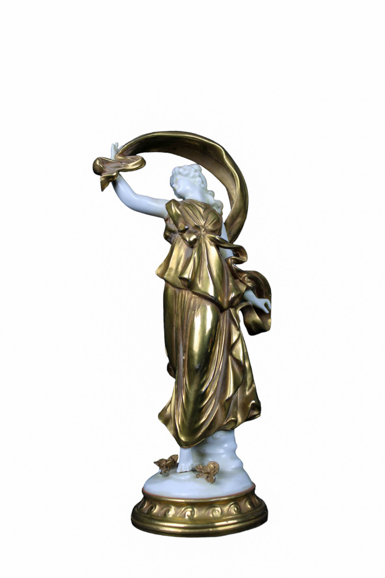 LOTTO COMPOSTO DA 1 scultura raffigurante figura femminile e 1 piccolo vaso in porcellana bianca e dorata a oro zecchino manifattura Capodimonte Napoli XX secolo h cm 22 / h cm 13