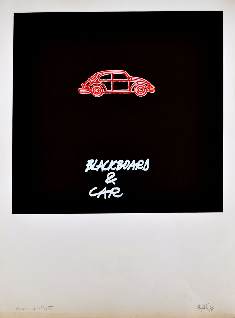 FABIO DE POLI Blackboard & car, 1976 Litografia a colori – es. Prova...