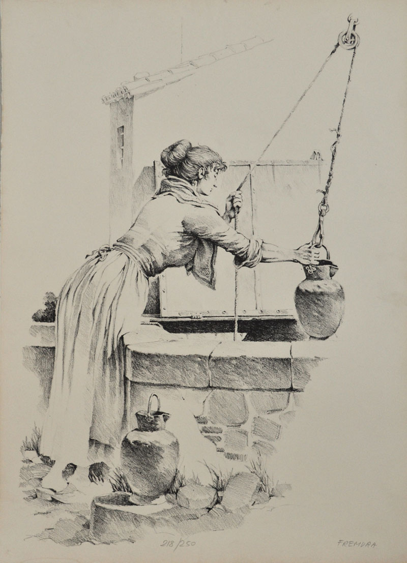 FREMURA Al pozzo Litografia in b/n – es. 218/250 cm. 70x50 Firma e tiratura in basso