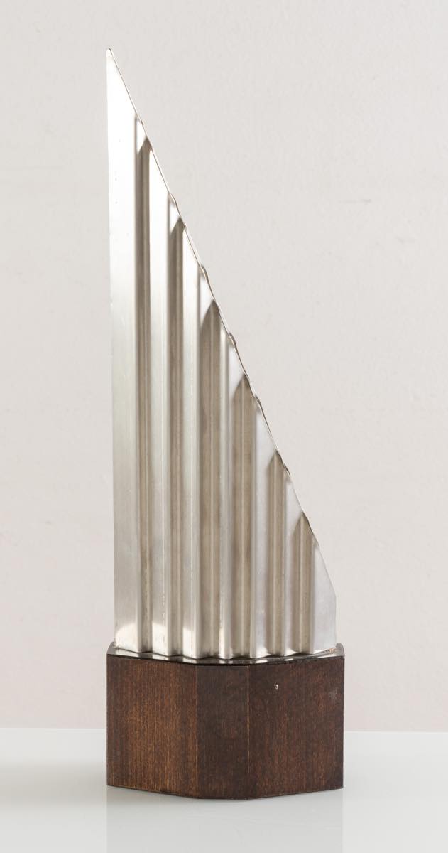 Giorgio Villa (Ancona 1933 – 2011), “Senza titolo”, 1986. Scultura multiplo con tiratura 48/50, reca firma, data e numerazione, presenta alla base simbolo, H max cm 43x14x8 Opera accompagnata da certificato di autenticità.