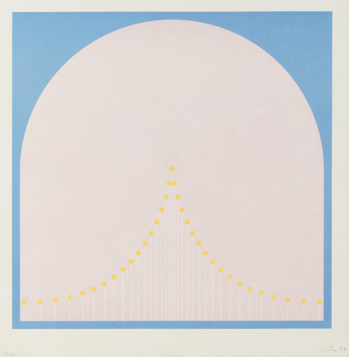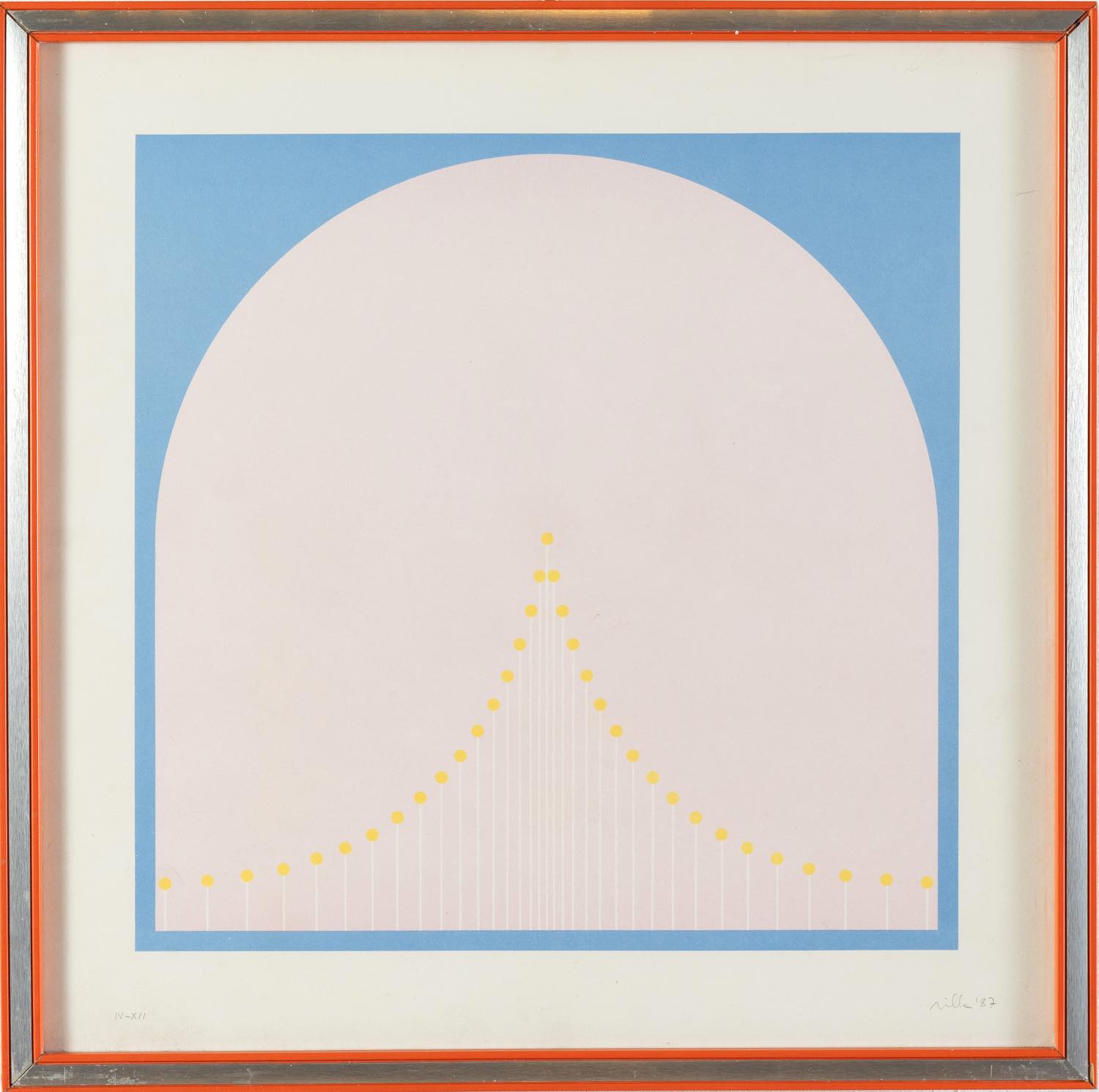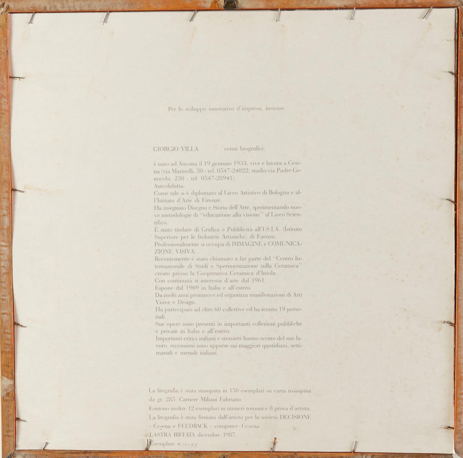 Giorgio Villa (Cesena 1933 – 2011), “Senza titolo”, 1987. Litografia a colori su carta, firmata e datata in basso a destra, numero di tiratura in basso a sinistra IV-XII, Lastra H cm 49x49