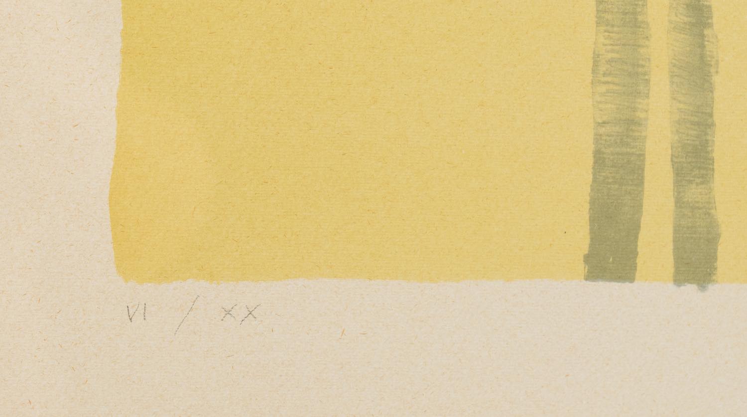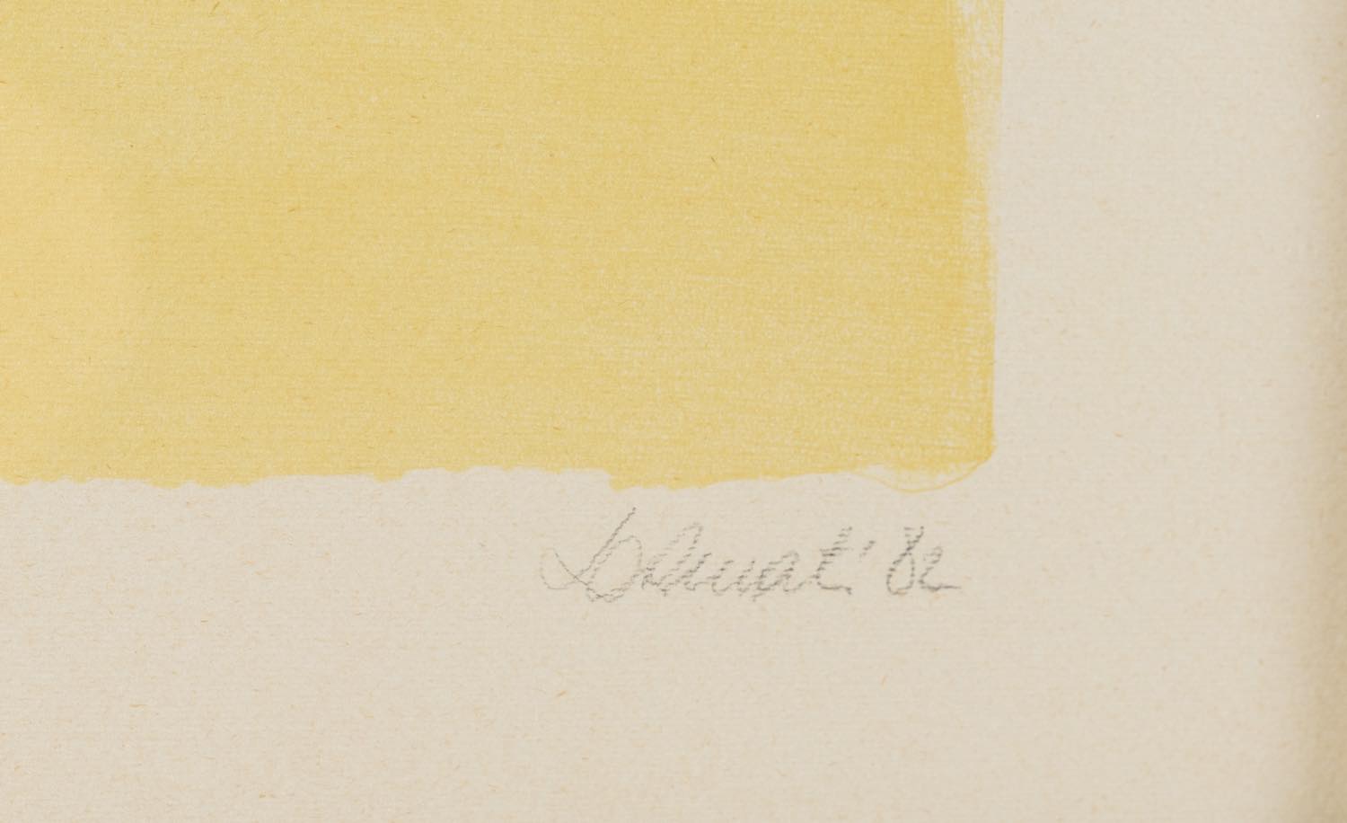 Davide Benati (Reggio Emilia 1949), “Lotus solus”, 1982. Litografia a colori su carta, firmata e datata in basso a destra, numero di tiratura in basso a sinistra VI/XX, reca al retro etichetta Grafica Studio – Bologna con autore, titolo e tiratura, Foglio H cm 70x50