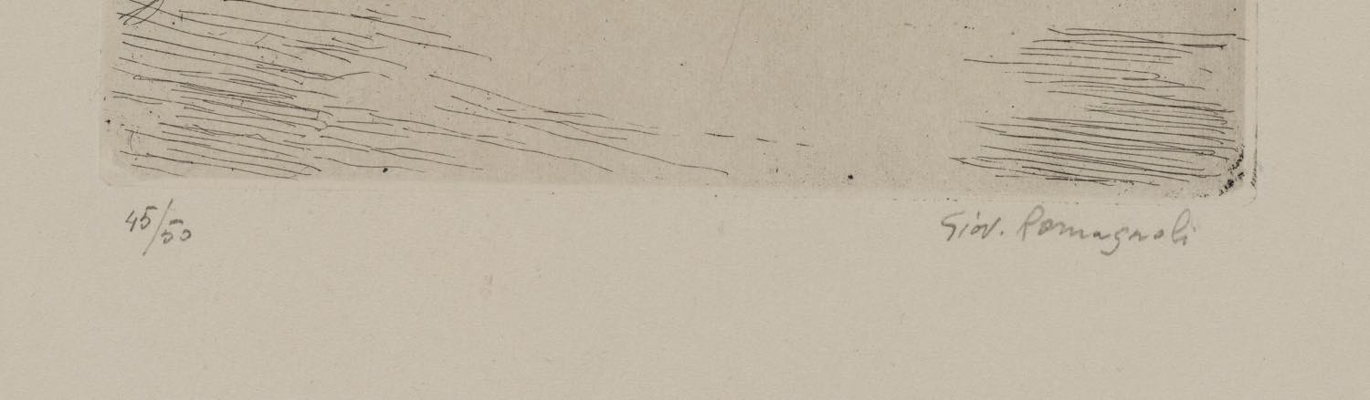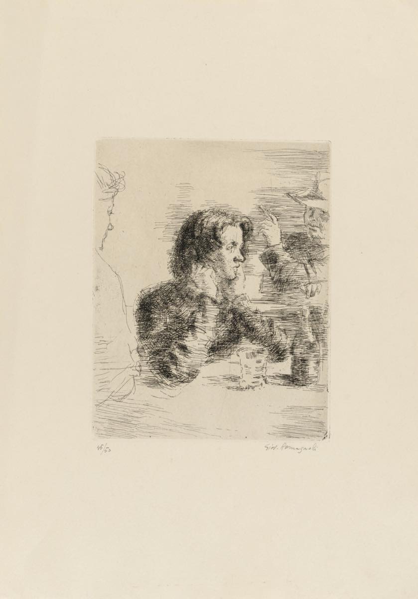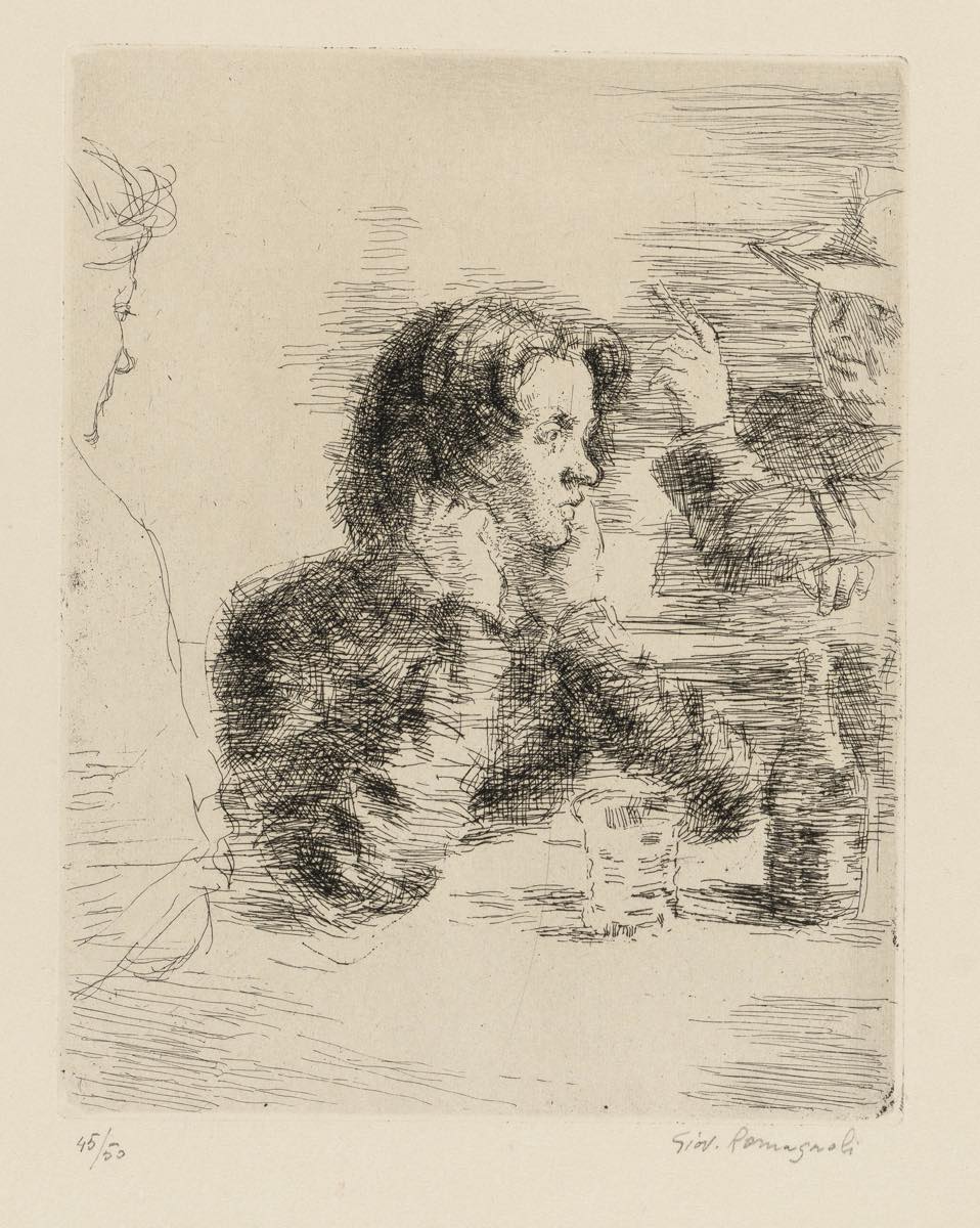 Giovanni Romagnoli (Faenza 1893 – Bologna 1976), “Giovane uomo”. Acquaforte su carta, firmata in basso a destra, numero di tiratura in basso a sinistra 45/50, Lastra H cm 25x19
