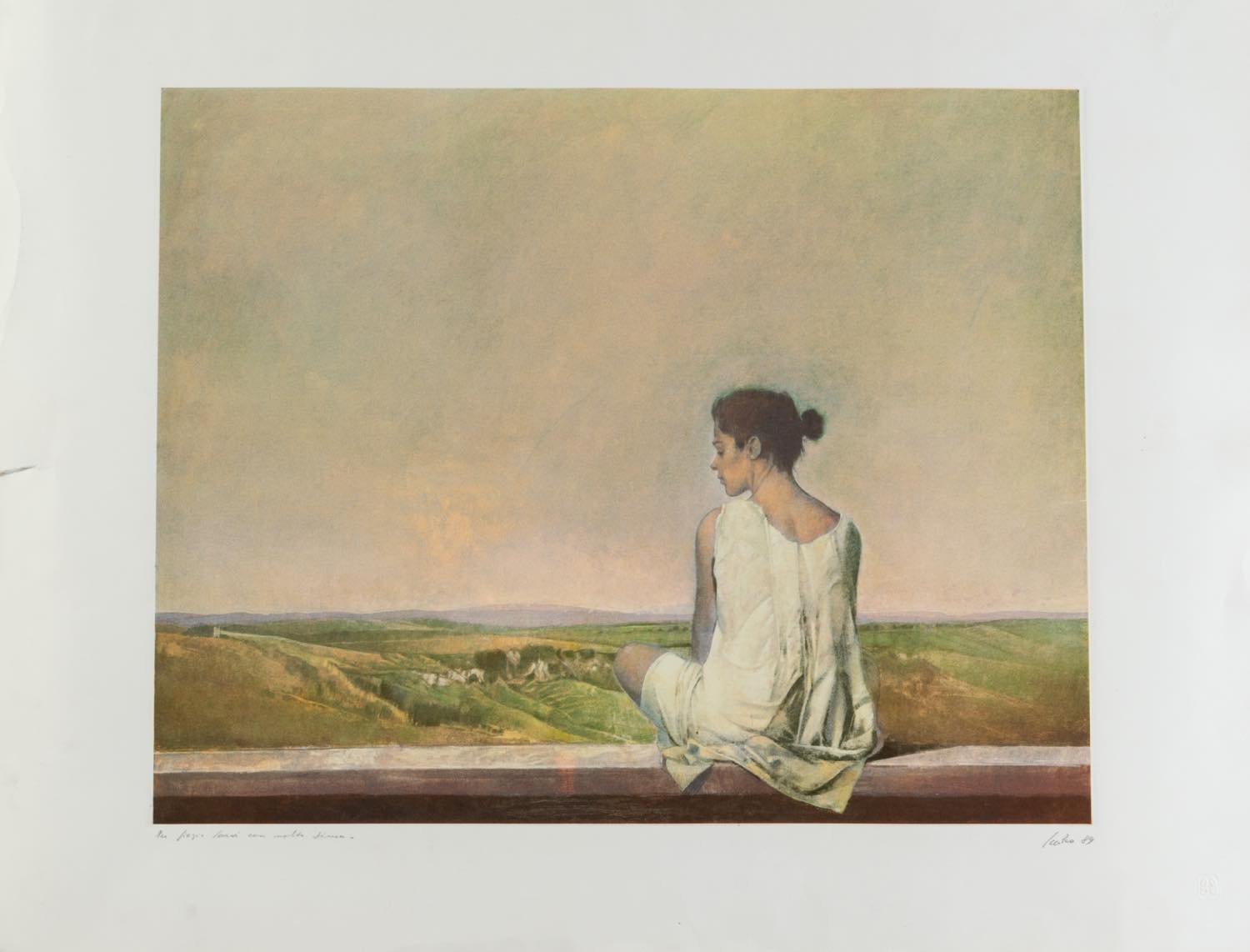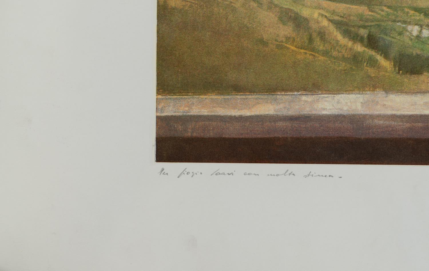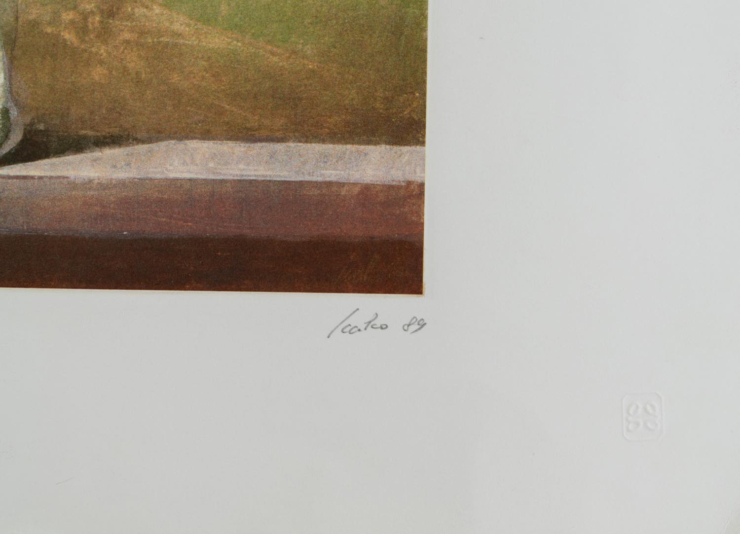 Giorgio Scalco (Schio 1929), “Senza titolo”, 1989. Litografia a colori su carta, firmata e datata in basso a destra, reca iscrizione per dedica in basso a sinistra, presenta in basso a destra timbro a secco, Foglio H cm 60.5x80 (lievi difetti al foglio)
