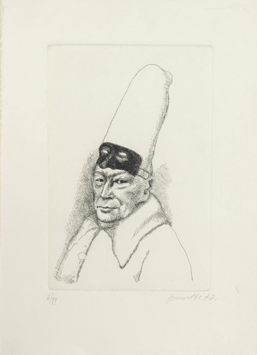 Artista del XX-XXI secolo, “Pulcinella”, 1978. Incisione su carta, firmata “Fornasetti” e datata in basso a destra, numero di tiratura in basso a sinistra 6/99, Lastra H cm 24x15.5