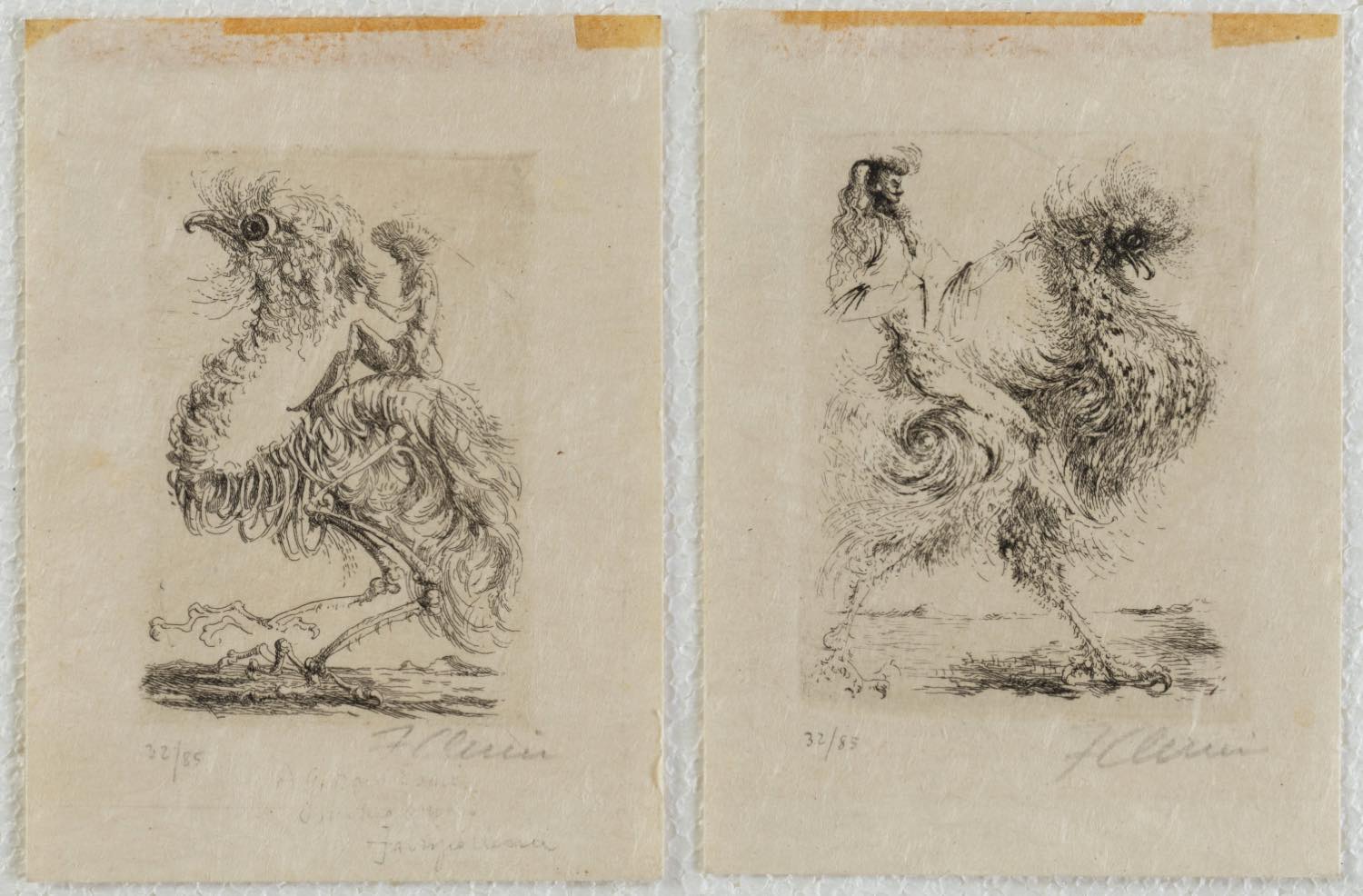 Fabrizio Clerici (Milano 1913 - Roma 1993), “Senza titolo”. Due incisioni su carta, firmate e datate in basso a destra, numero di tiratura in basso a sinistra 32/85, Lastre H cm 7.5x6 – 7.5x5
